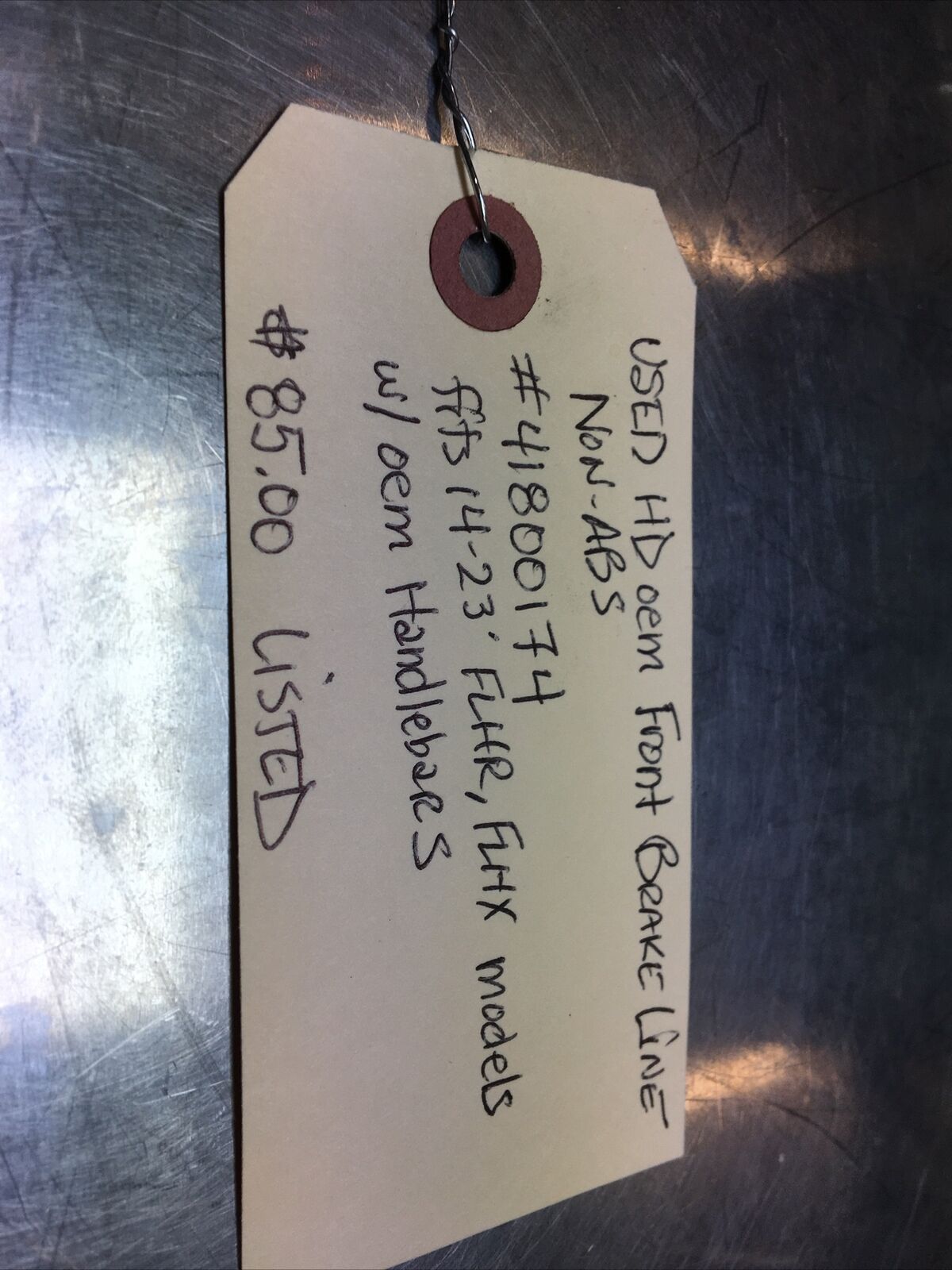Harley Davidson oem Front Brake Line Non ABS #41800174. Condition is used. Fits 14-23’ FLHR, FLHX models with oem handlebars buyer is responsible for fitment and applications