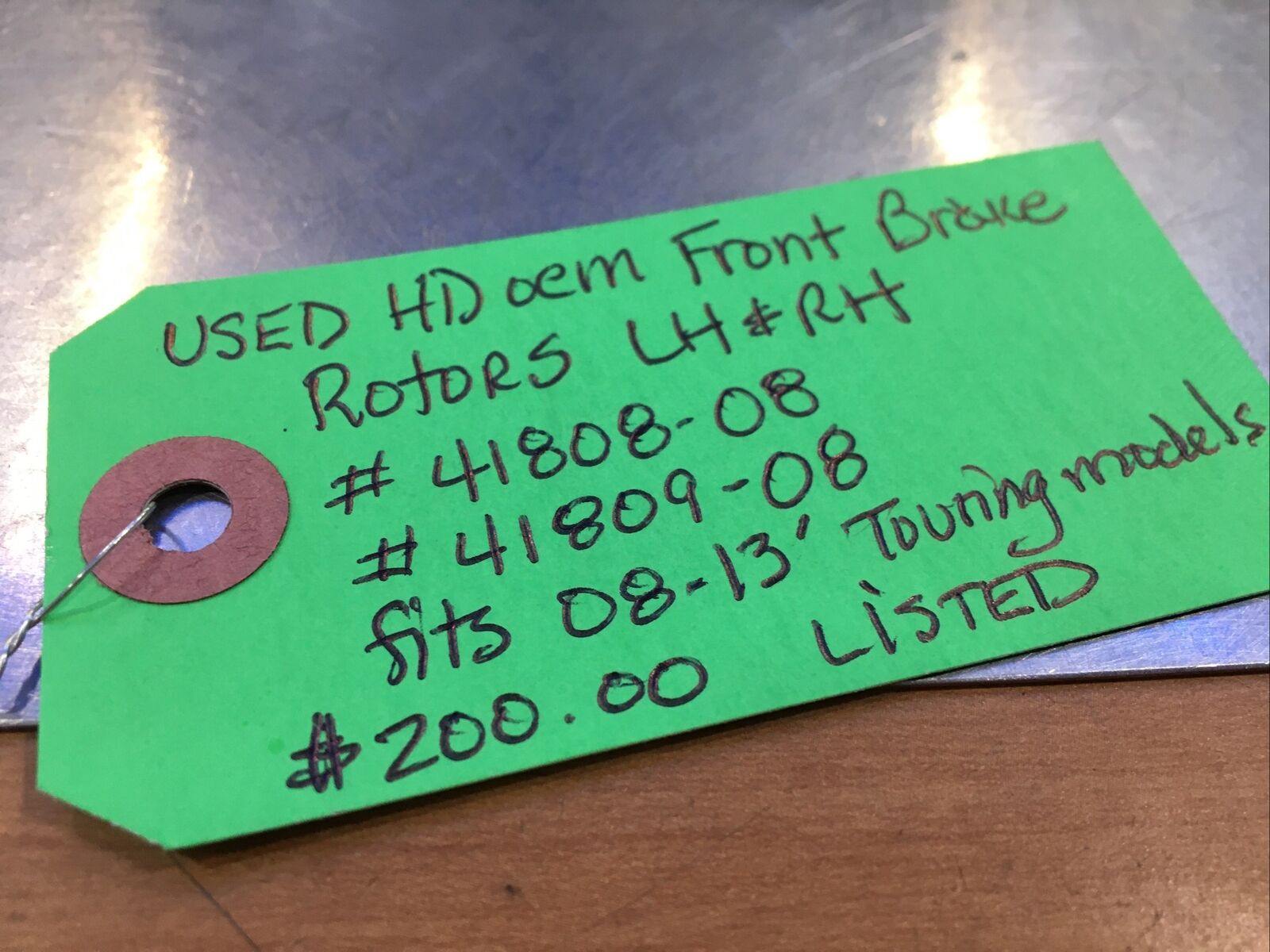 Harley Davidson oem Front Brake Rotors LH & RH #41808-08/41809-08. Condition is used. Fits 08-13’ Touring models buyer is responsible for fitment and applications