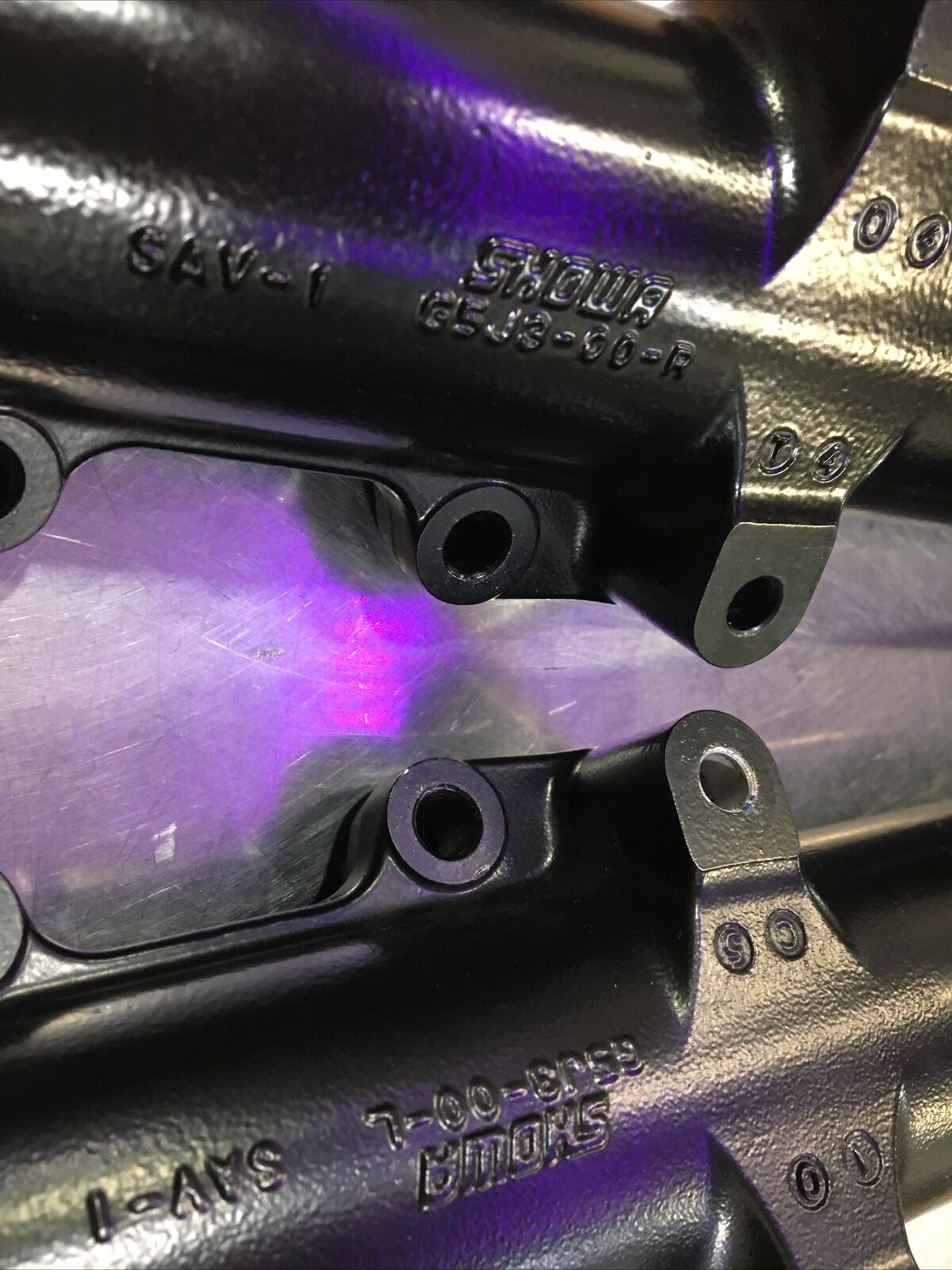 While these lower legs are used, they are in excellent condition with only a few spots on the top where they were hung during production. The non-factory powder coating adds a unique touch to your bike, giving it a custom look that sets it apart from the rest.