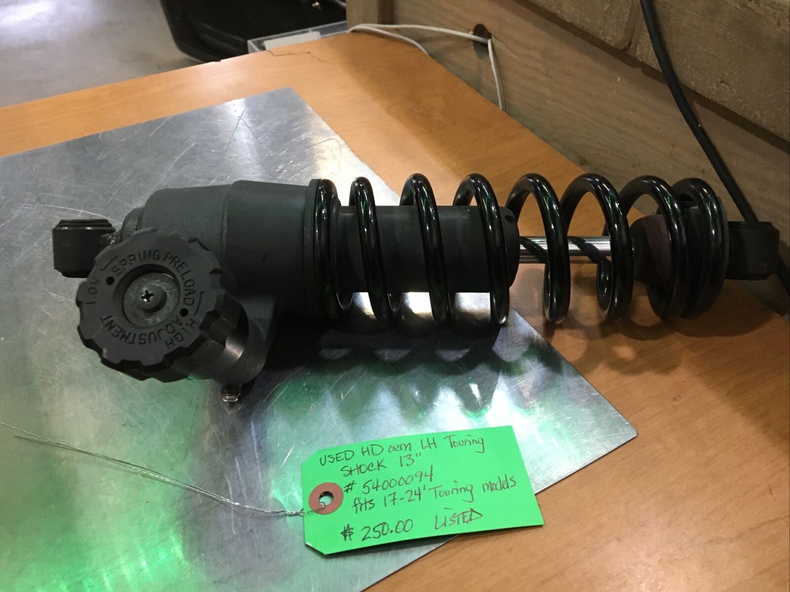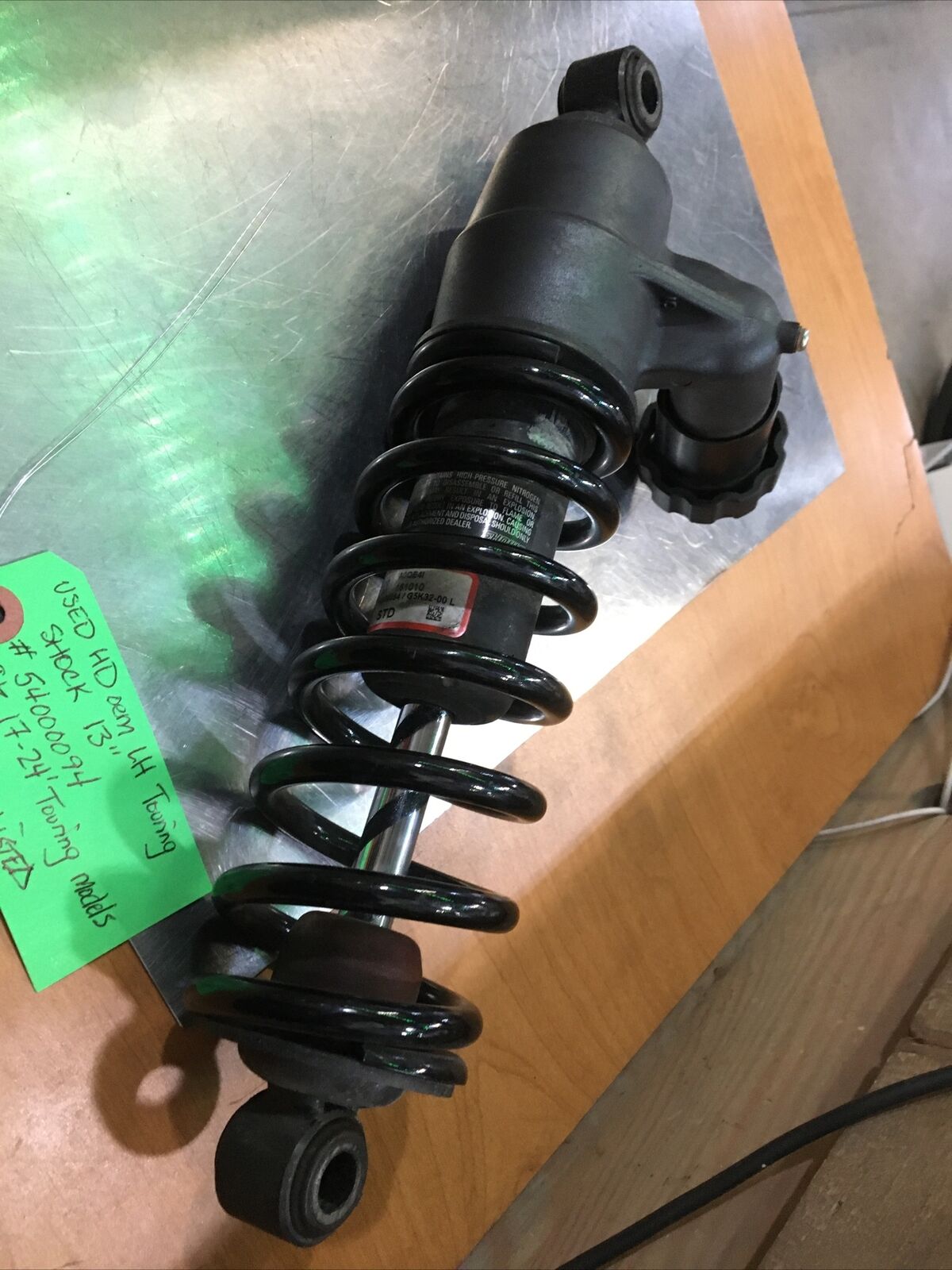 Harley Davidson oem LH Touring Shock 13” #54000094. Condition is used. Fits 17-24’ Touring models buyer is responsible for fitment and applications