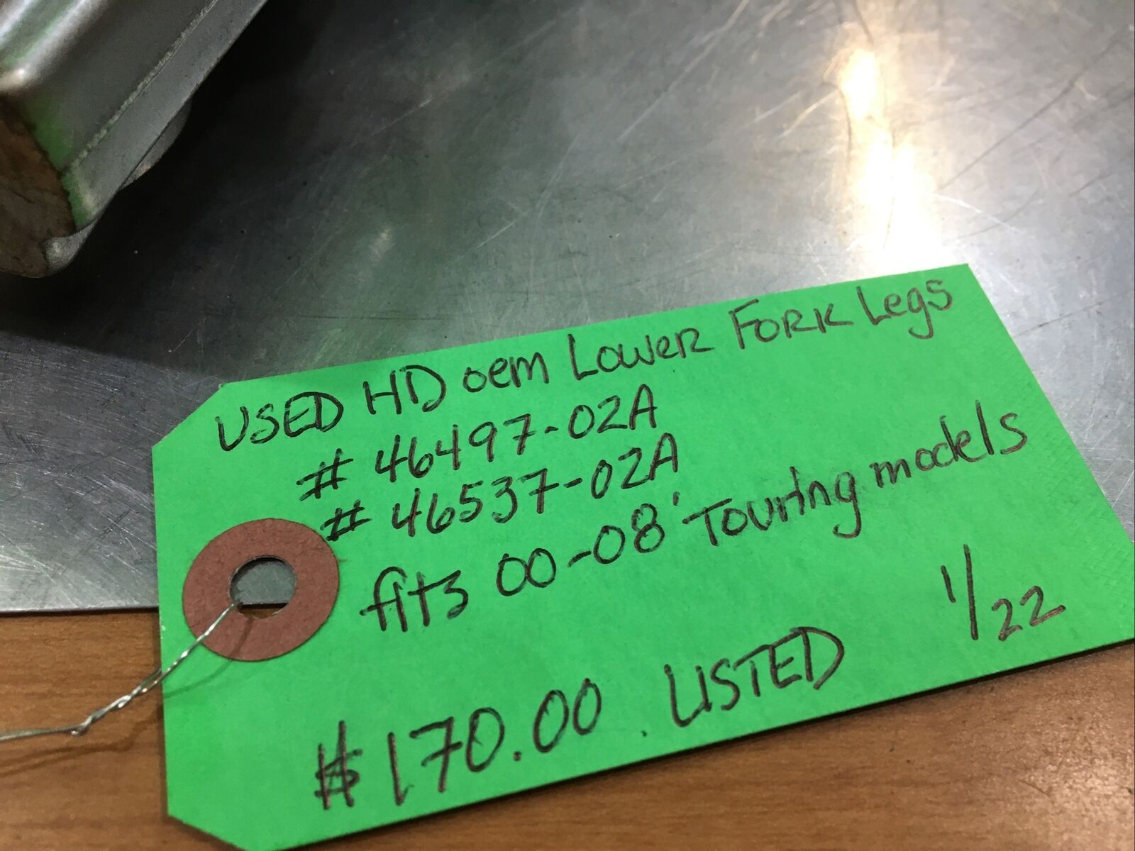 Harley Davidson oem Lower Fork Legs #46497-02A/46537-02A. Condition is used. Fits 00-08’ Touring models buyer is responsible for fitment and applications