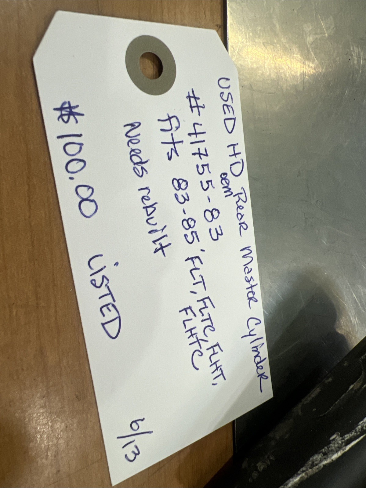 Harley Davidson oem Rear Master Cylinder #41755-83. Condition is used. Needs rebuilt. Fits 83-85’ FLT, FLTC, FLHT, FLHTC models buyer is responsible for fitment and applications