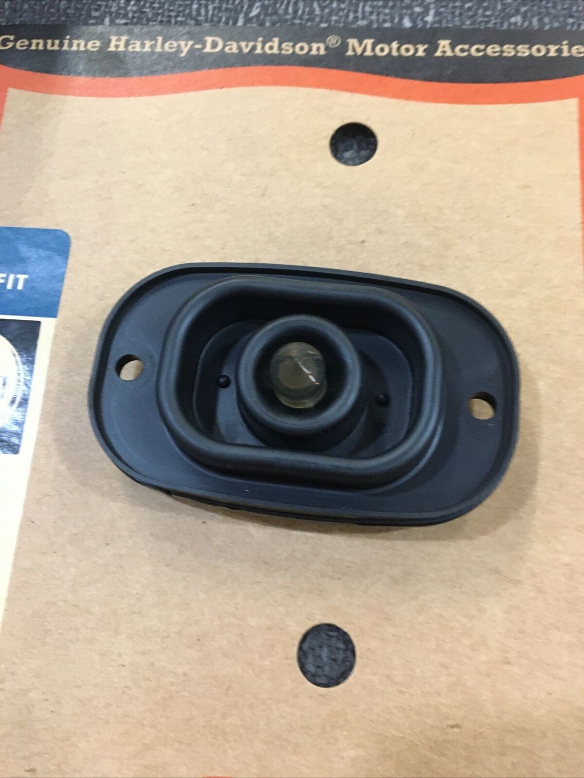 Harley Davidson OEM Rear master cylinder cover #45057-99. Condition is used. Fits 99-04’ Touring models and 99-05’ Softails buyer is responsible for fitment and applications no returns