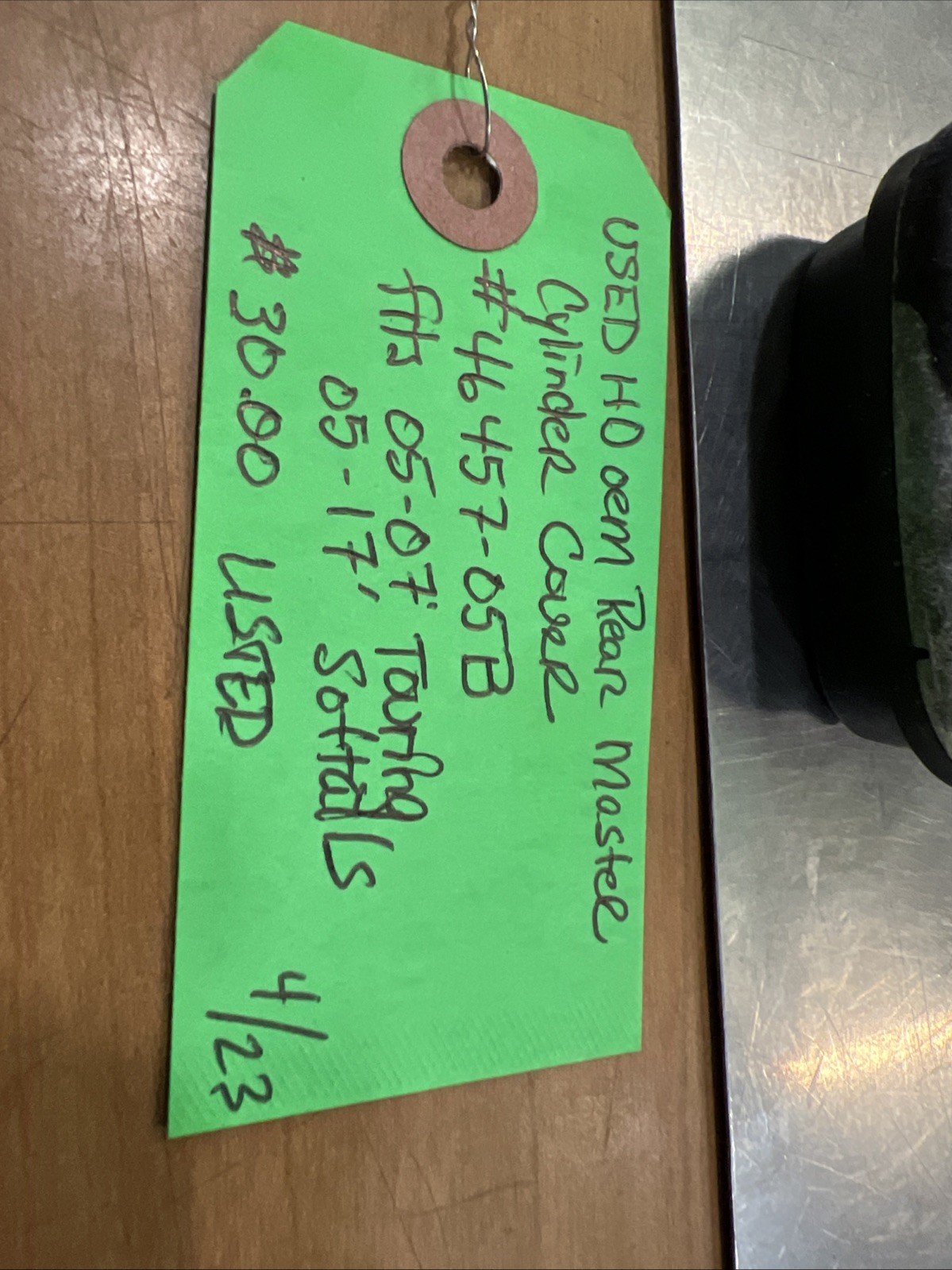 Harley Davidson oem Rear Master Cylinder Cover #46457-05B. Condition is used. Fits 05-07’ Touring and 05-17’ Softails buyer is responsible for fitment and applications