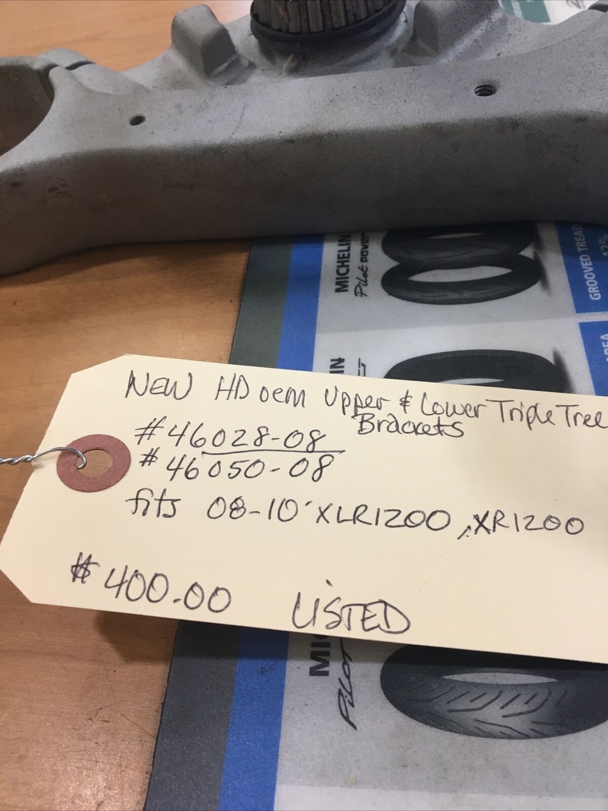 Harley Davidson oem Upper & Lower Triple Tree Brackets #46028-08/46050-08. Condition is new. Old stock. Fits 08-10’ XLR1200, XR1200 models may have other applications buyer is responsible for fitment and applications