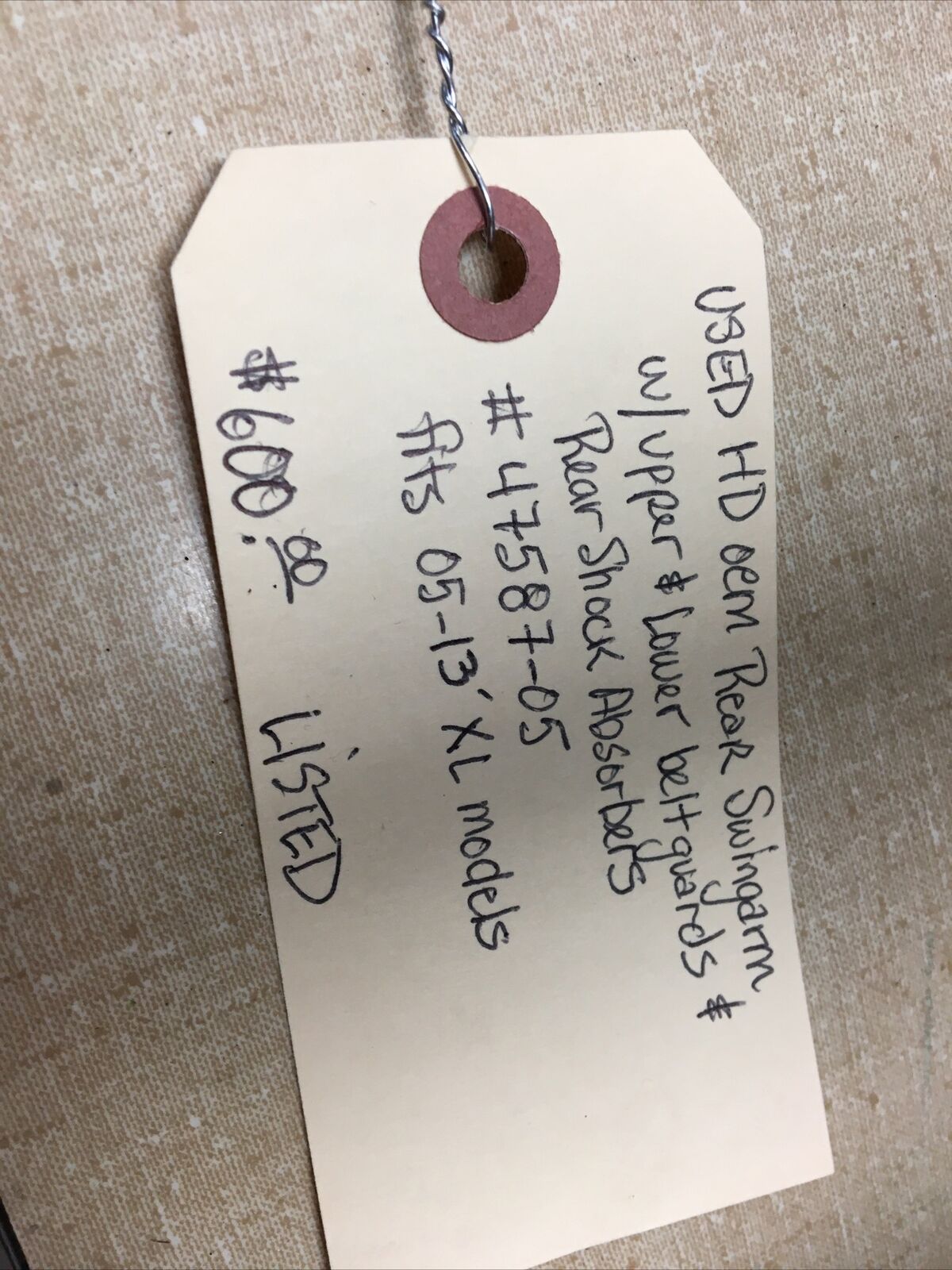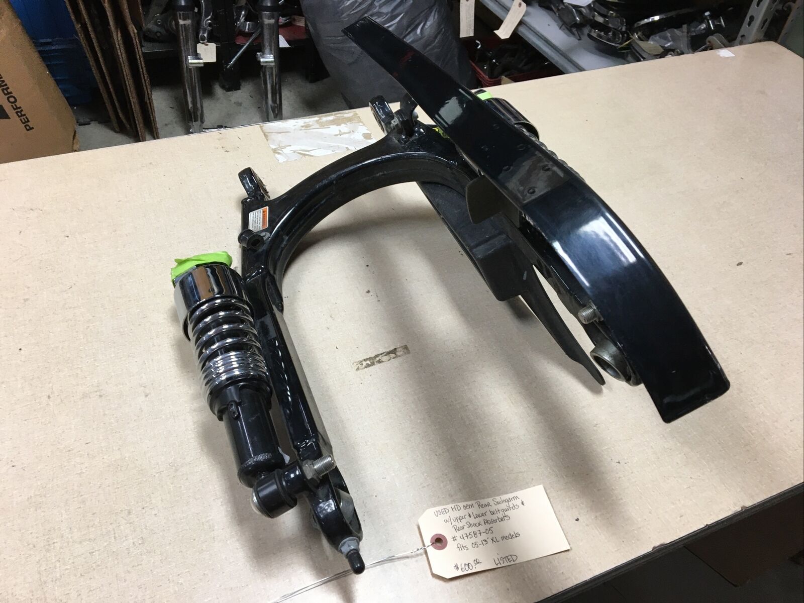 Harley Davidson oem Rear Swingarm with Upper & Lower belt guards and Shock Absorbers #47587-05. Condition is used. Fits 05-13’ XL models buyer is responsible for fitment and applications