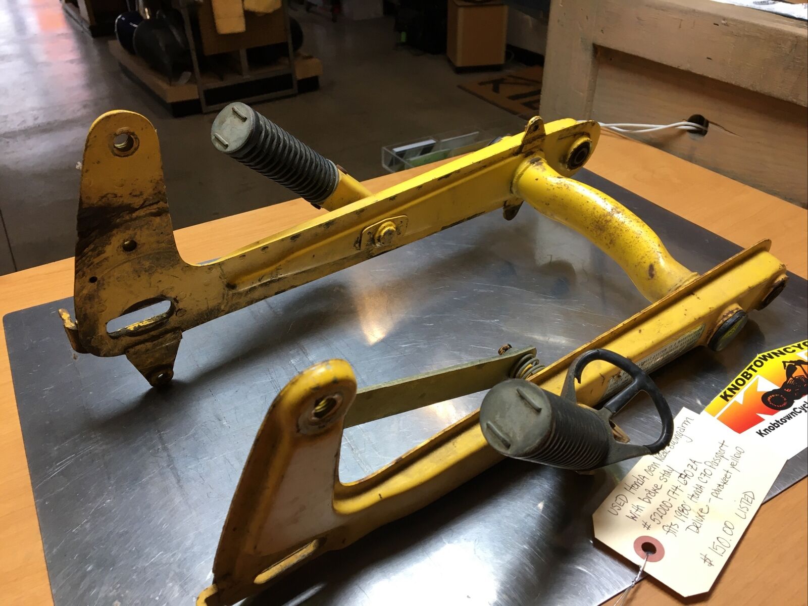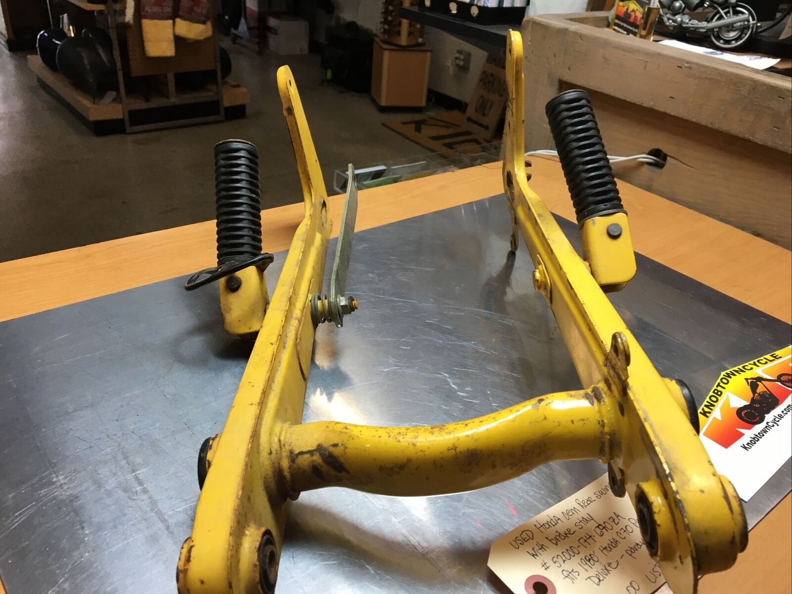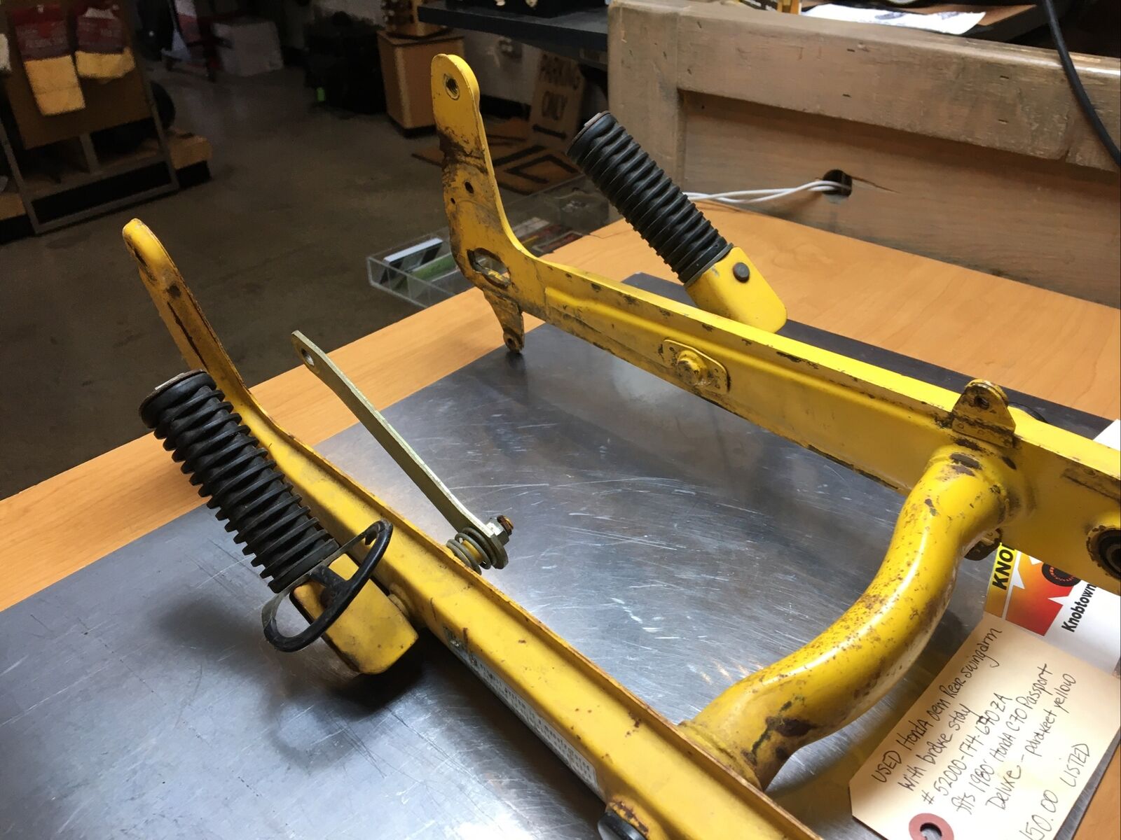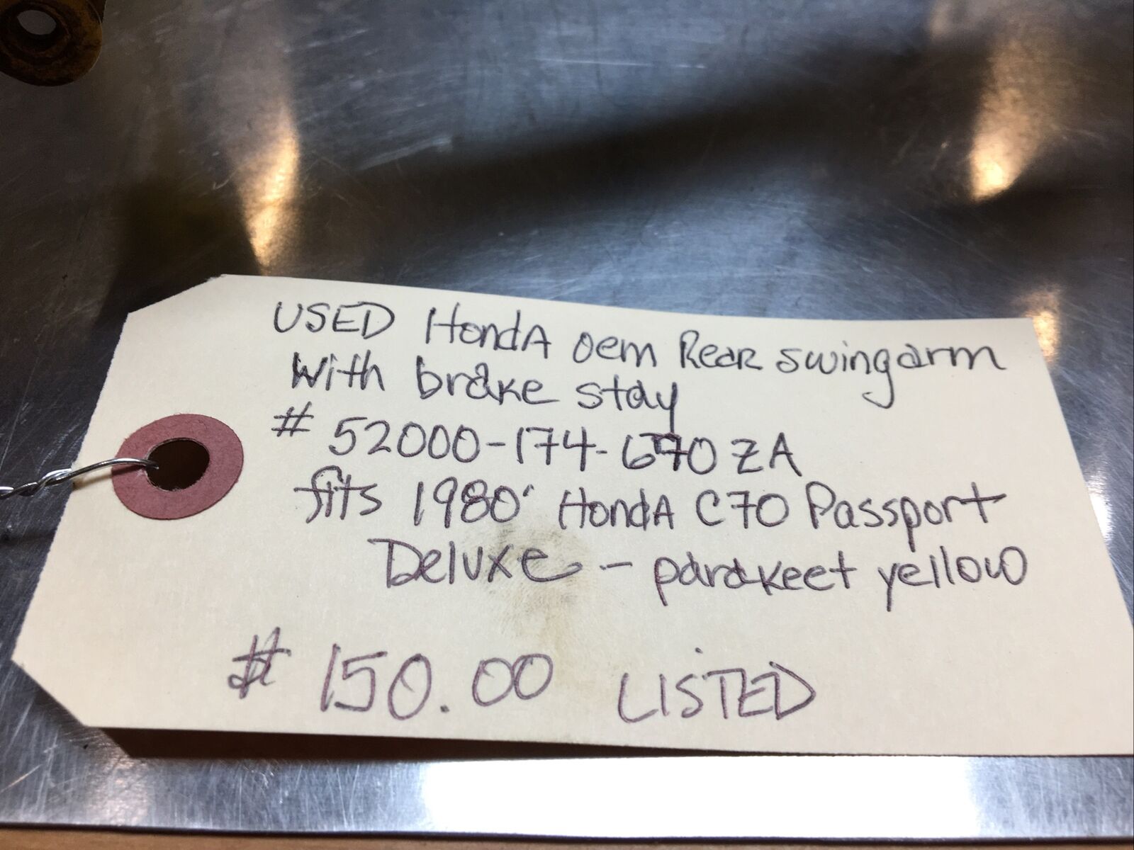 Honda oem Rear Swingarm with Brake Stay #52000-174-670ZA. Condition is used. Fits 1980’-81’ Honda C70 Passport Deluxe-parakeet yellow buyer is responsible for fitment and applications