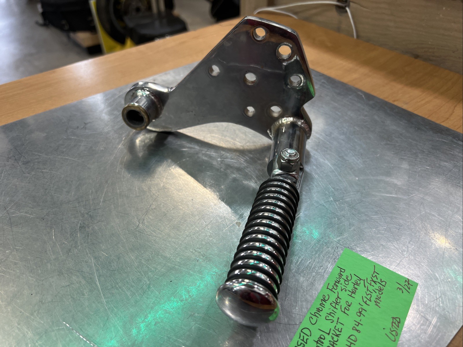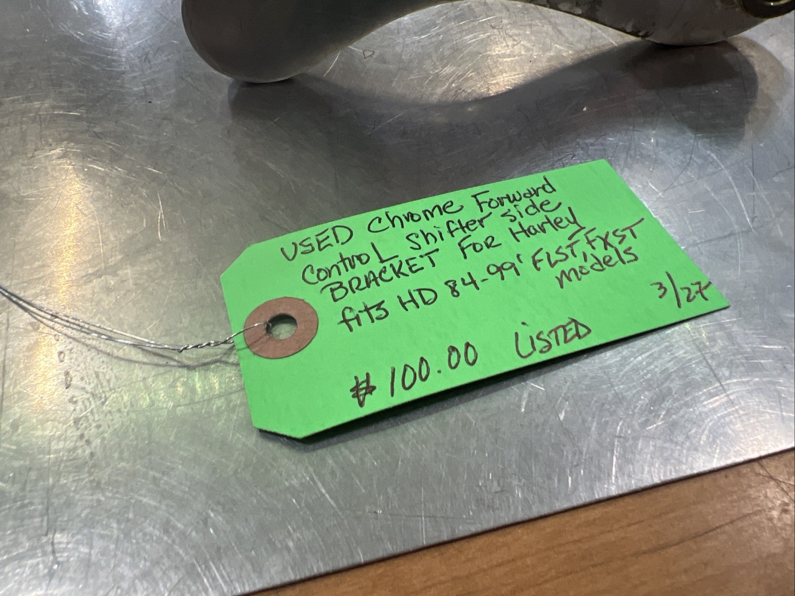 Chrome Forward Control Shifter Side Bracket for Harley. Condition is used. Fits Harley Davidson 84-99’ FLST, FXST models buyer is responsible for fitment and applications