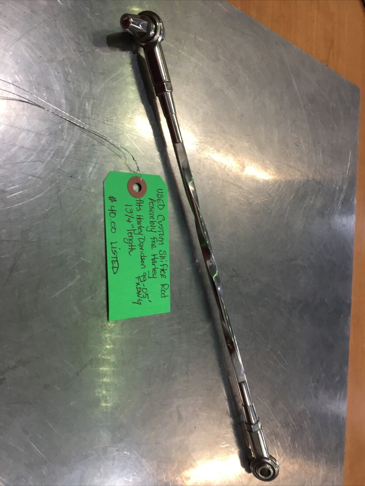Custom Shifter Rod Assembly for Harley. Condition is used. Fits Harley Davidson 99-05’ FXDWG models measures 13-1/4” length buyer is responsible for fitment and applications