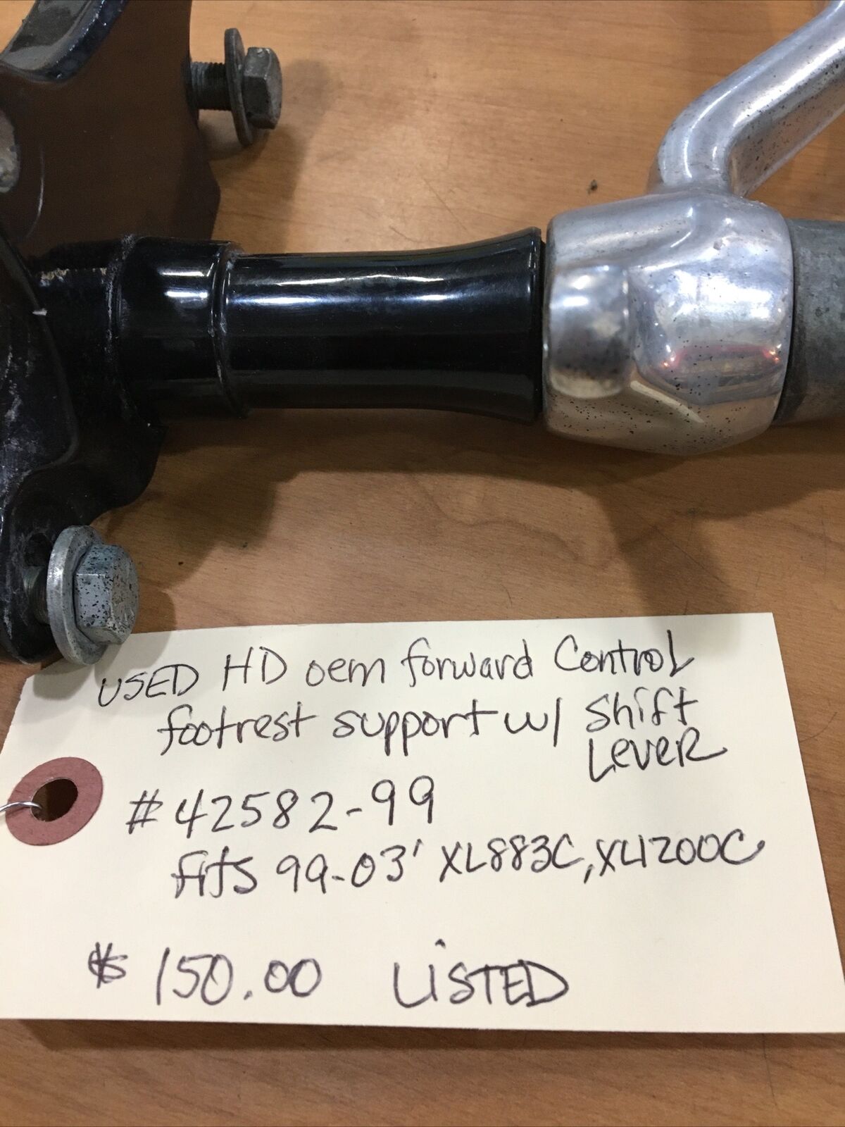 Harley Davidson oem Forward Control Footrest Support with Shift lever #42582-99. Condition is used. Fits 99-03’ XL883C, XL1200C models buyer is responsible for fitment and applications