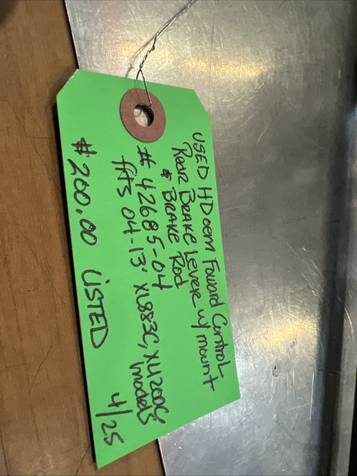 Harley Davidson oem Forward Control Rear Brake Lever w/mount & Brake Rod #42685-04. Condition is used. Fits 04-13’ XL883C, XL1200C models buyer is responsible for fitment and applications