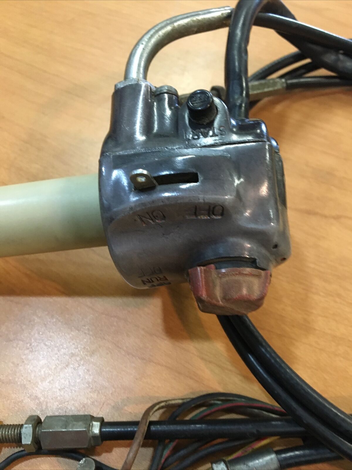 In the world of motorcycle enthusiasts, the Honda Start, Stop Switch Assembly #35300-341-671 holds a special place. This used assembly may have kinked cables and a missing plastic cap, but its compatibility with Honda models from the 70s makes it a sought-after part for vintage bike restoration projects.