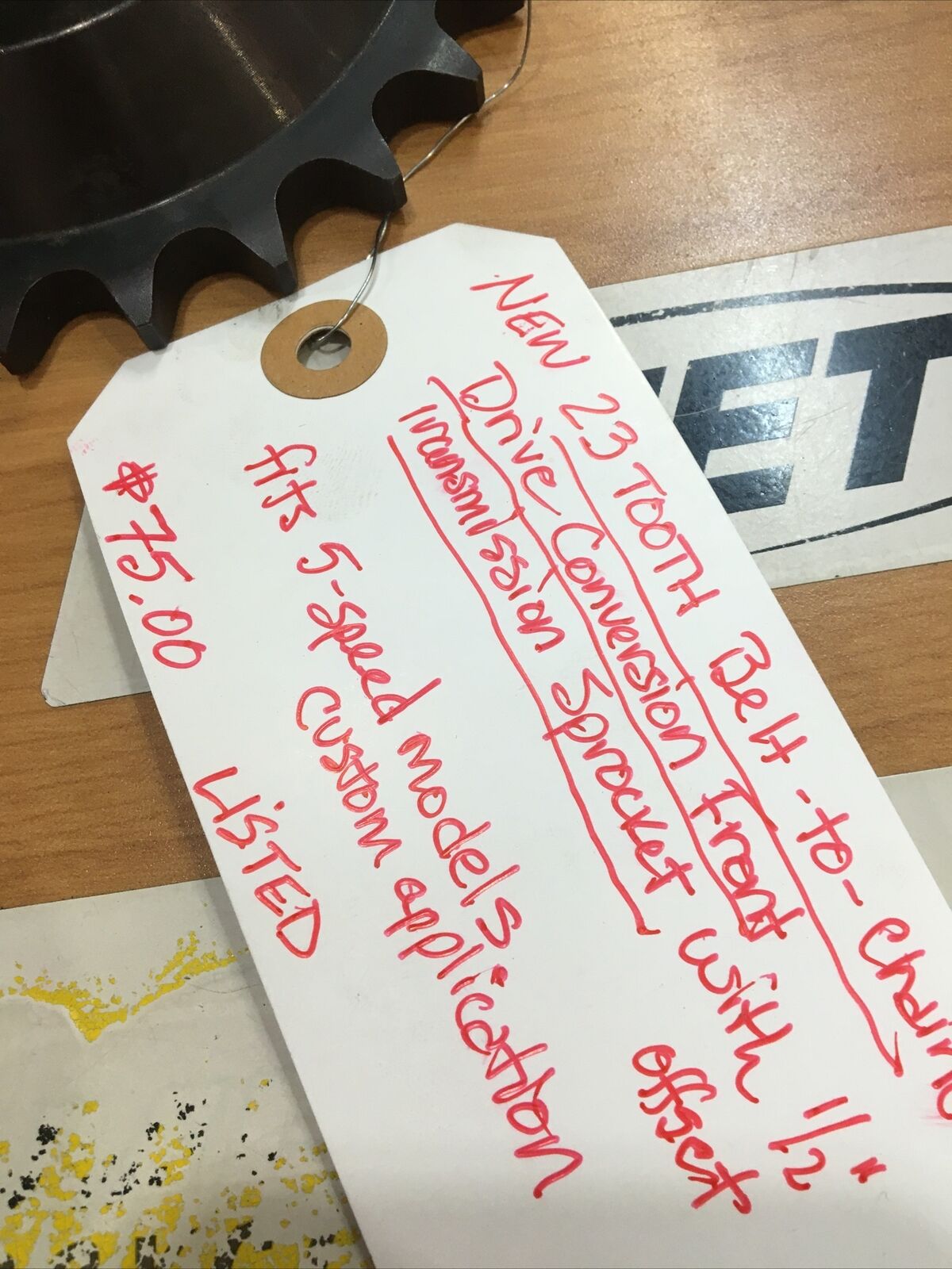 23 Tooth Belt-to-chain Drive Conversion Front Transmission Sprocket. Condition is new. Has 1/2” offset for a 530 chain fits 5-speed models custom applications