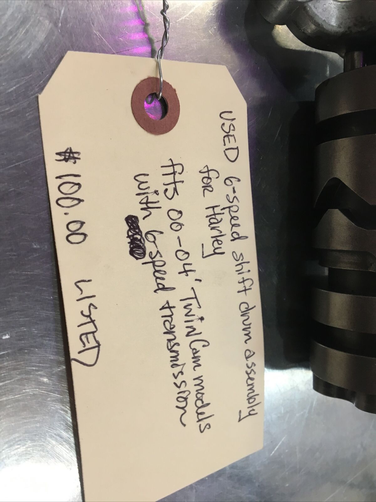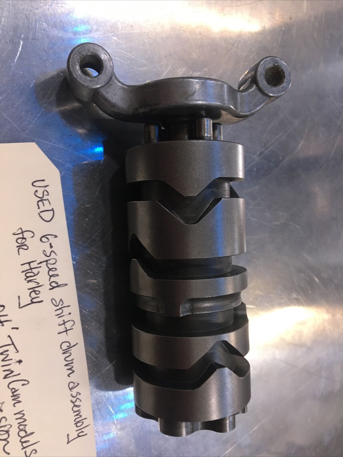 6-Speed Shift Drum Assembly For Harley. Condition is used. Fits 00-04’ Harley Davidson Twin Cam models with 6-speed transmission buyer is responsible for fitment and applications