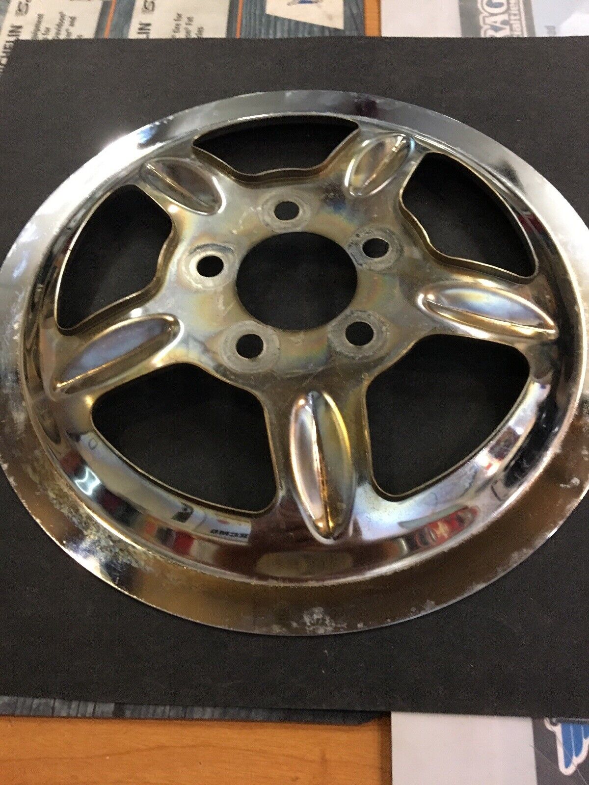 Chrome Rear Pulley Cover #42-0934. Condition is Used.no hardware fits 04’-later XL models with stock 68 tooth pulley buyer is responsible for fitment and applications