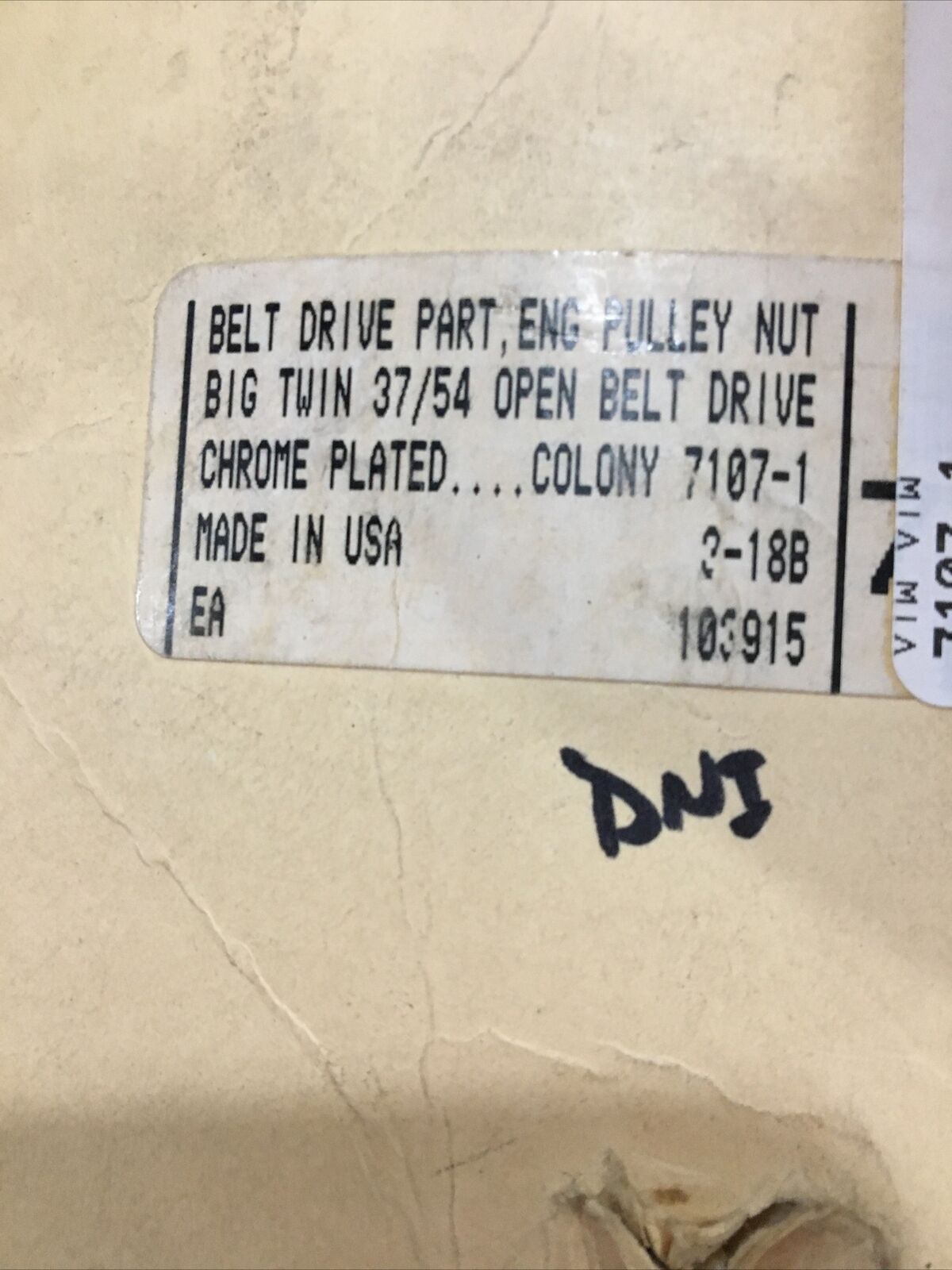 Condition is new. Engine pulley nut fits 37-54’ Big Twins open belt drive buyer is responsible for fitment and applications