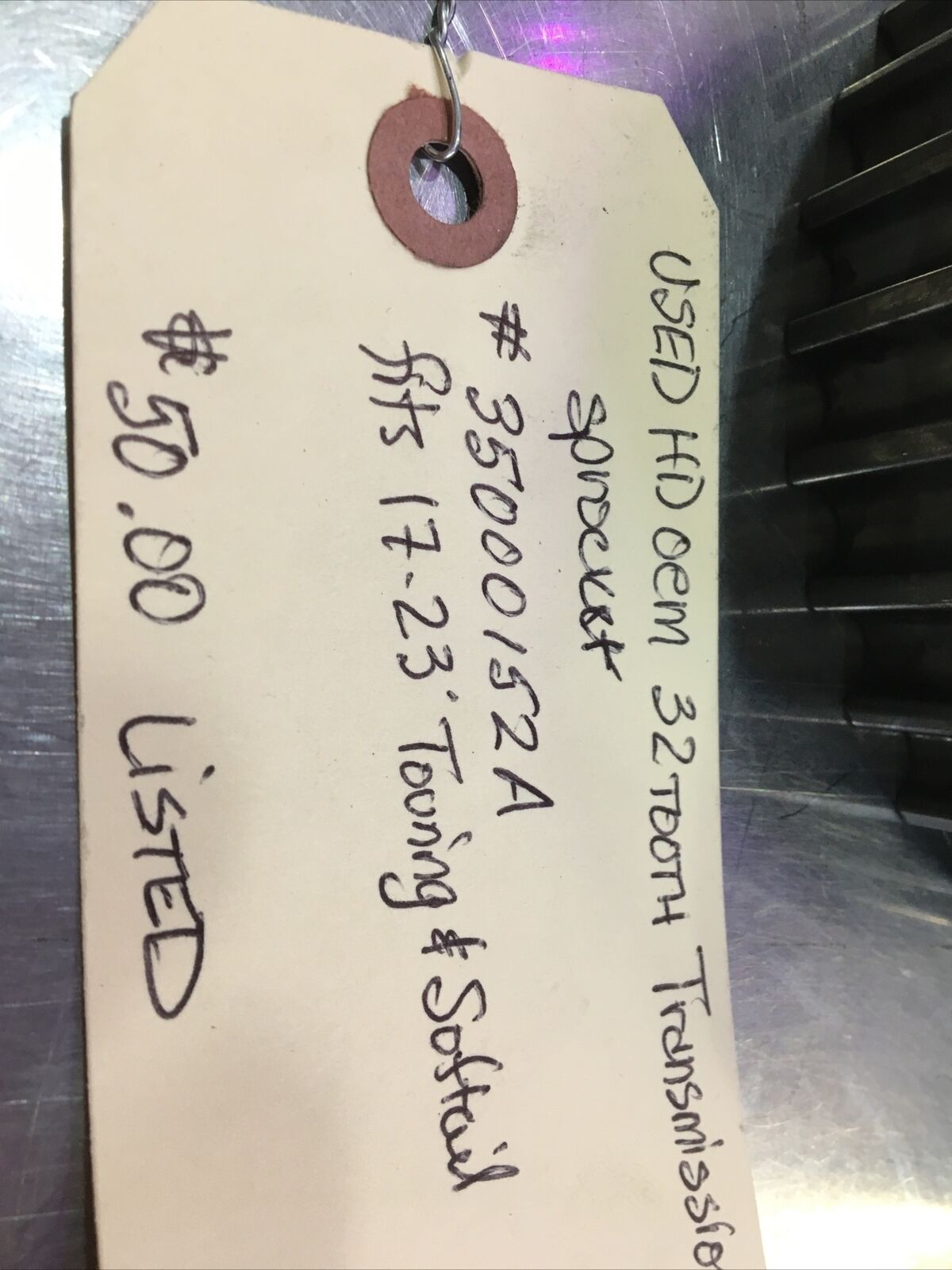 Harley Davidson oem 32 Tooth Transmission Sprocket #35000152A. Condition is used. Fits 17-23’ Touring and Softails models buyer is responsible for fitment and applications