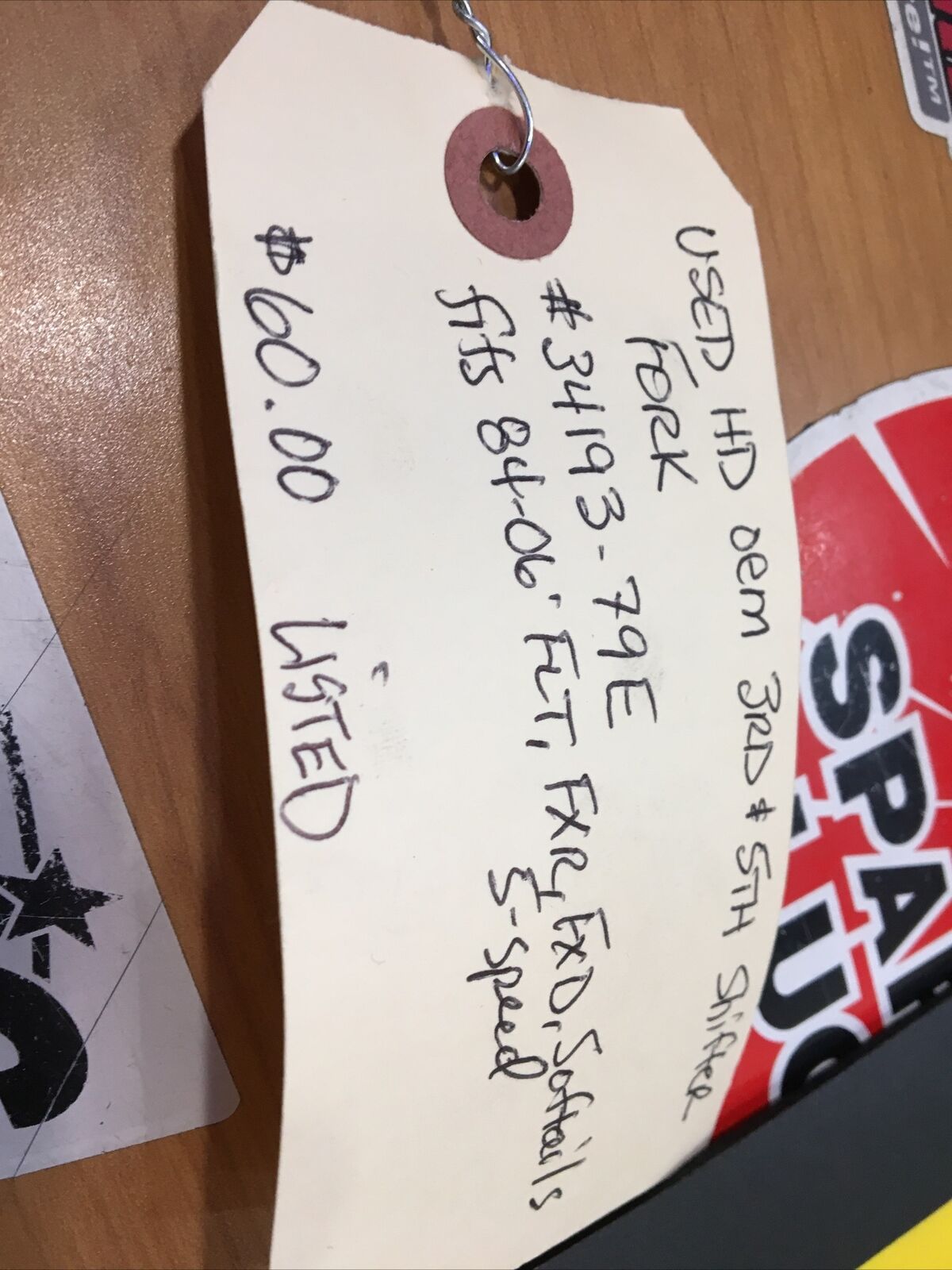 Harley Davidson oem 3rd & 5th Transmission Shifter Fork #34193-79E. Condition is used. Fits 84-06’ FLT, FXR, FXD, Softails 5-speed buyer is responsible for fitment and applications
