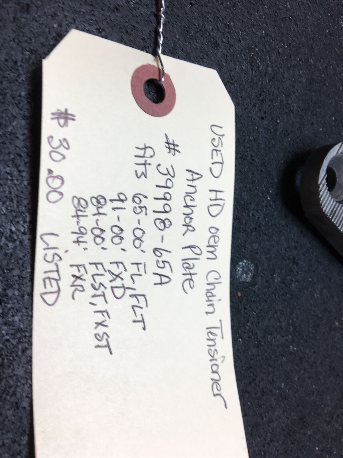 Harley Davidson oem Chain Tensioner Anchor Plate #39998-65A. Condition is used. Fits 65-00’ FL, FLT, 91-00’ FXD, 84-00’ FLST, FXST, 84-94’ FXR models buyer is responsible for fitment and applications