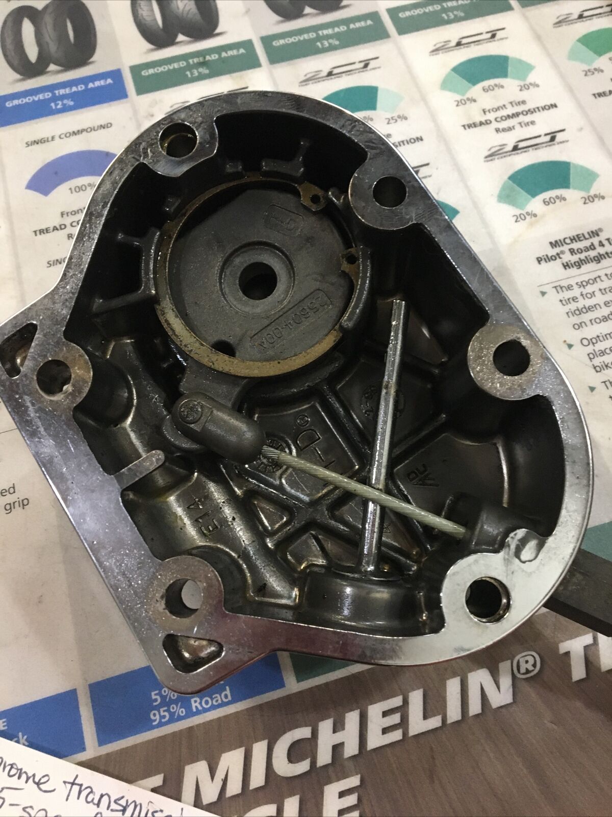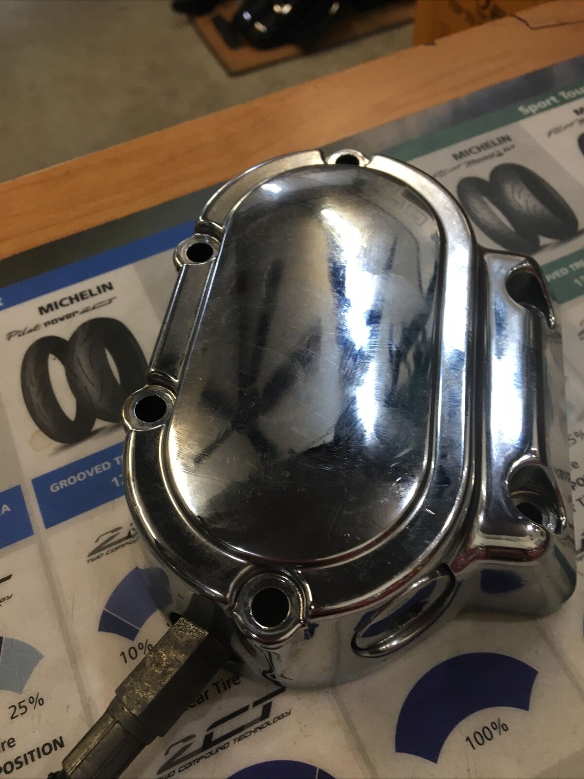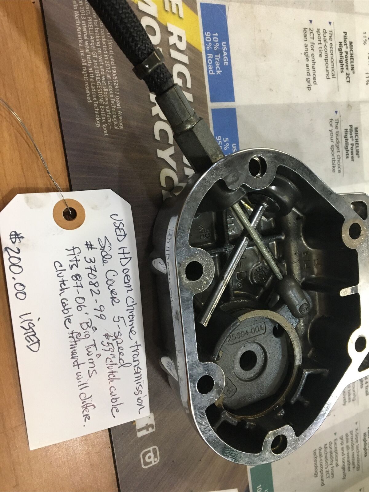 Harley Davidson oem chrome transmission side cover 5-speed #37082-99. Condition is used. Also has 59” clutch cable, dipstick and inner clutch cable ramp. Fits 87-06’ Big Twins clutch cable fitment will differ buyer is responsible for fitment and applications