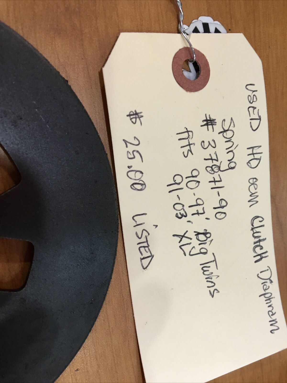 Harley Davidson oem Clutch Diaphram Spring #37871-90. Condition is used. Fits 90-97’ Big Twins and 91-03’ XL models buyer is responsible for fitment and applications