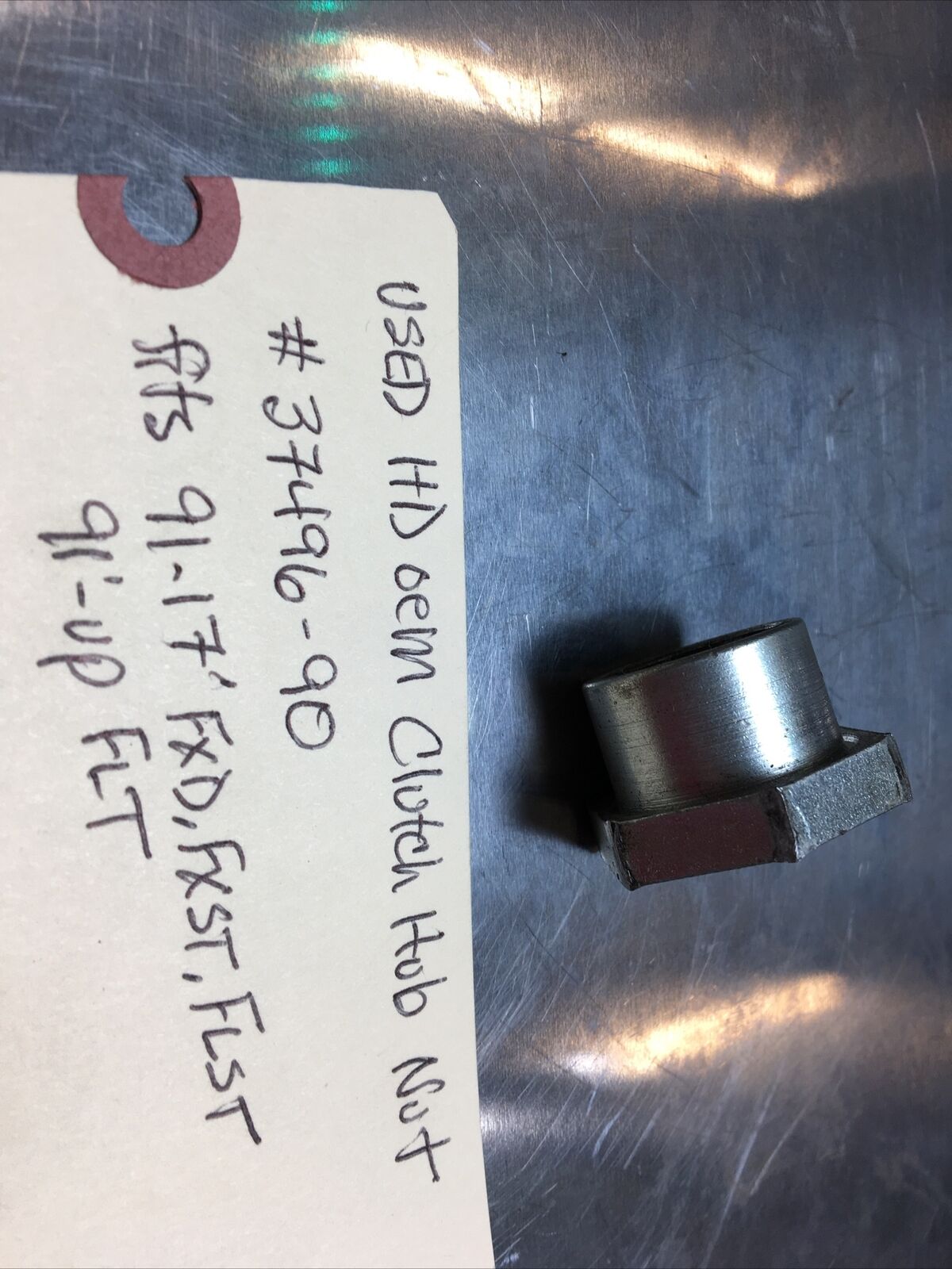 Harley Davidson oem Clutch Hub Nut #37496-90. Condition is used. Fits 91-17’ FXD, FXST, FLST, 91’-later FLT models buyer is responsible for fitment and applications