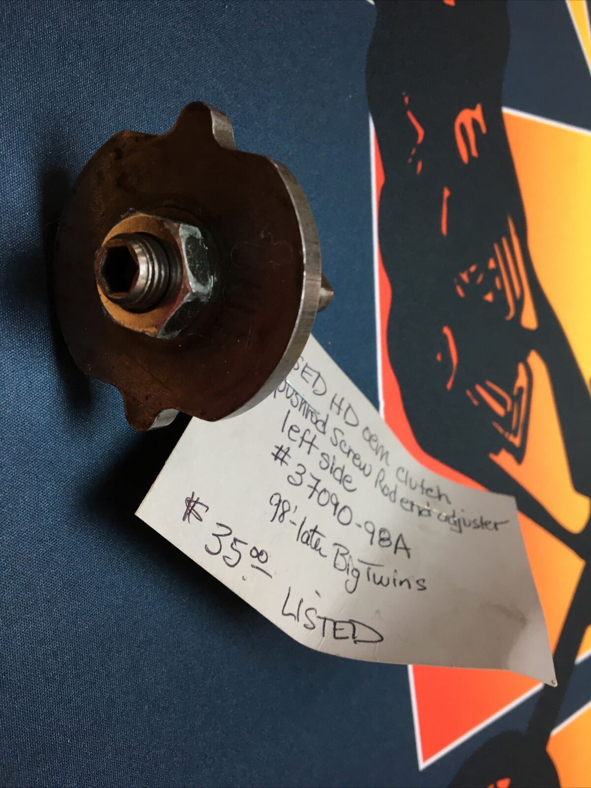 Harley Davidson oem Clutch Pushrod Screw Rod End Adjuster left side #37090-98A. Condition is used. Fits 98’-later Big Twins buyer is responsible for fitment and applications