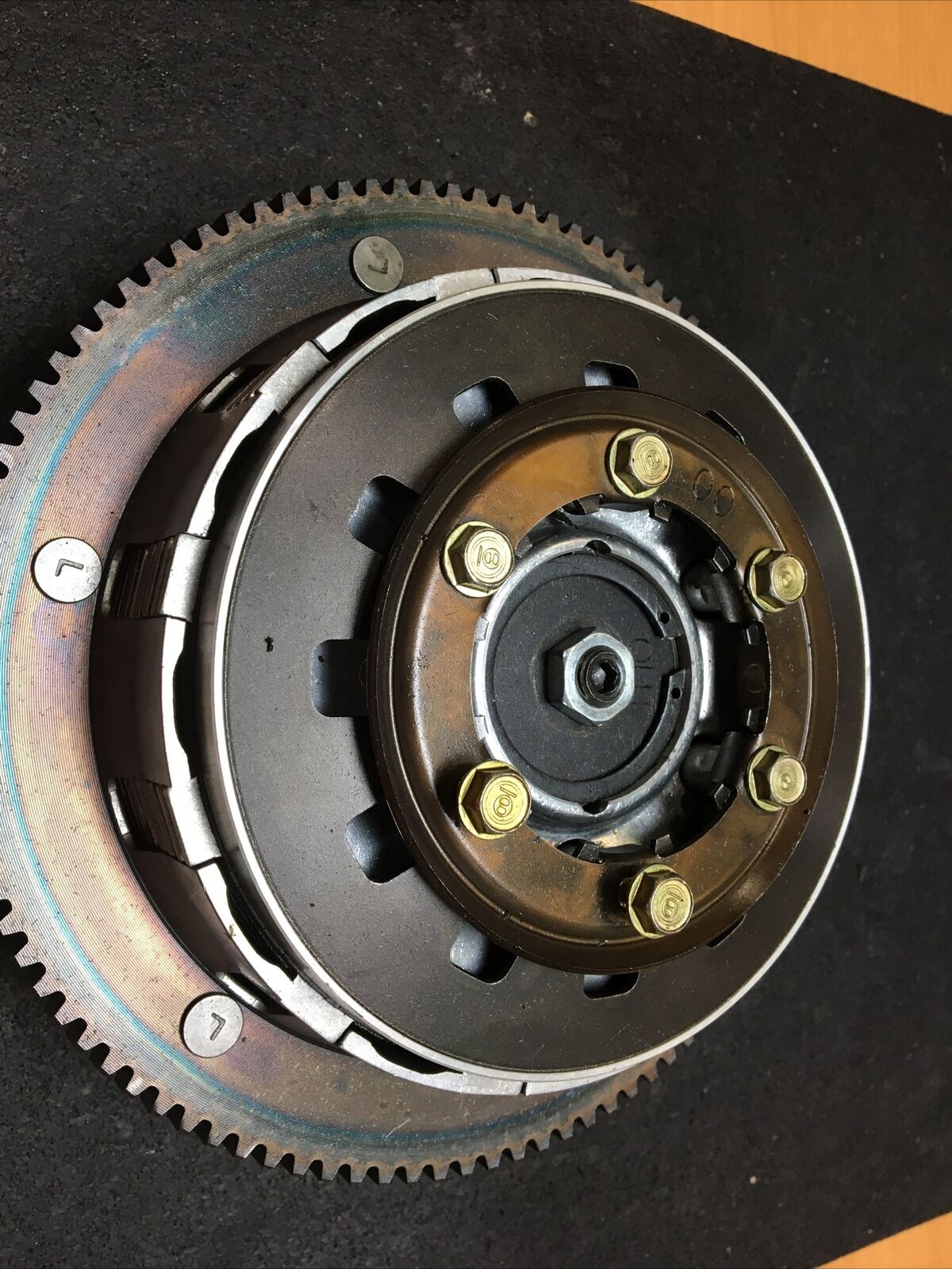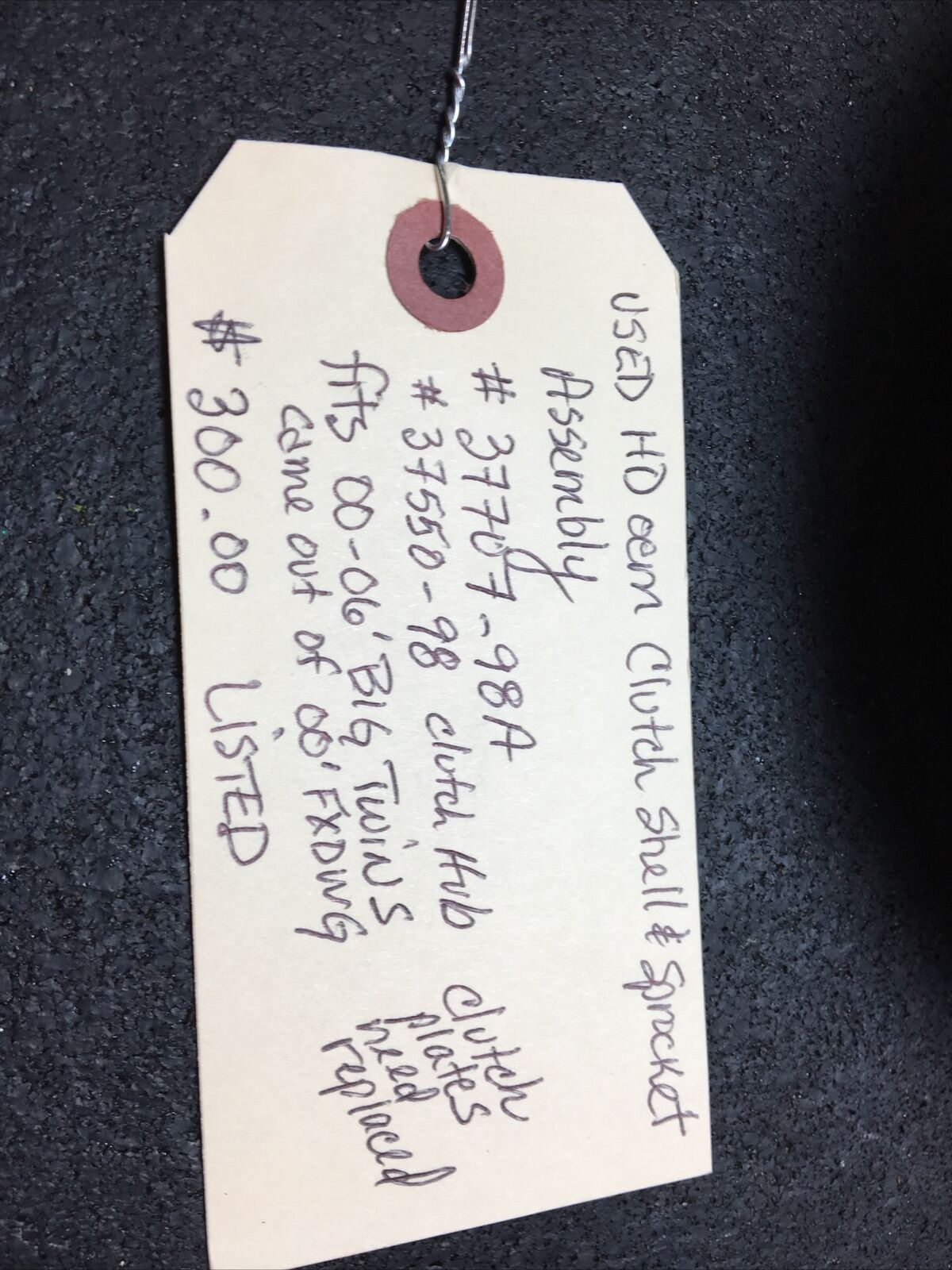 Harley Davidson oem Clutch Shell & Sprocket Assembly #37707-98A/37550-98. Condition is used. Clutch plates need replaced. Fits 00-06’ Big Twins came out of 00’ FXDWG buyer is responsible for fitment and applications