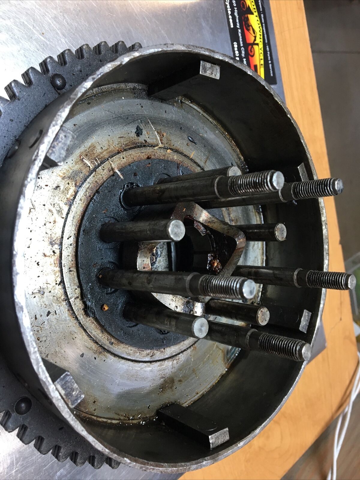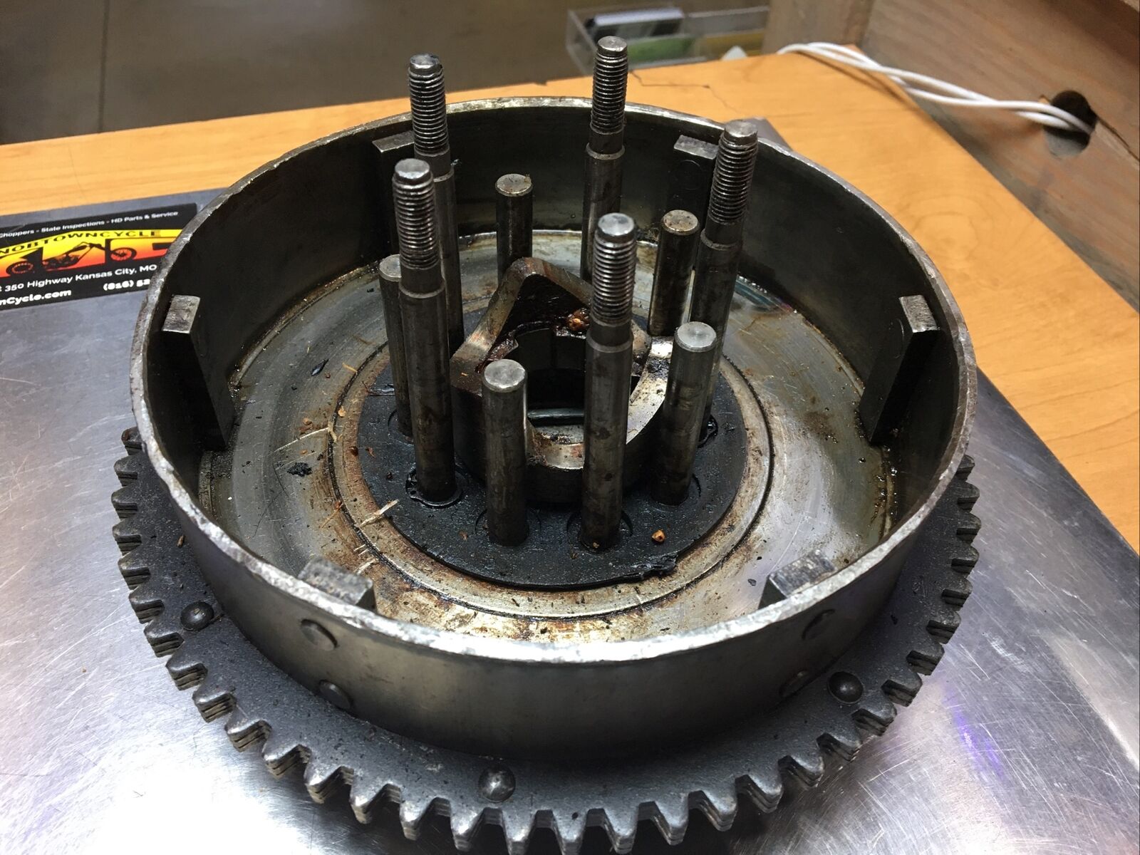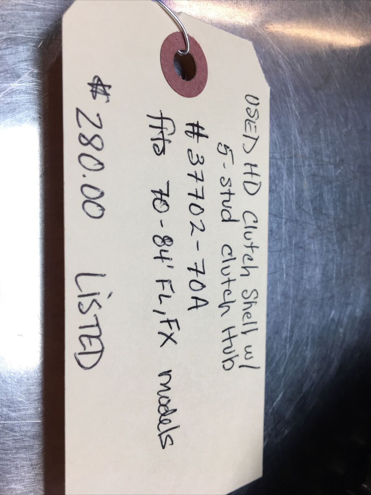 Harley Davidson Clutch Shell With 5-Stud Clutch Hub #37702-70A. Condition is used. Fits 70-84’ FL, FX models buyer is responsible for fitment and applications