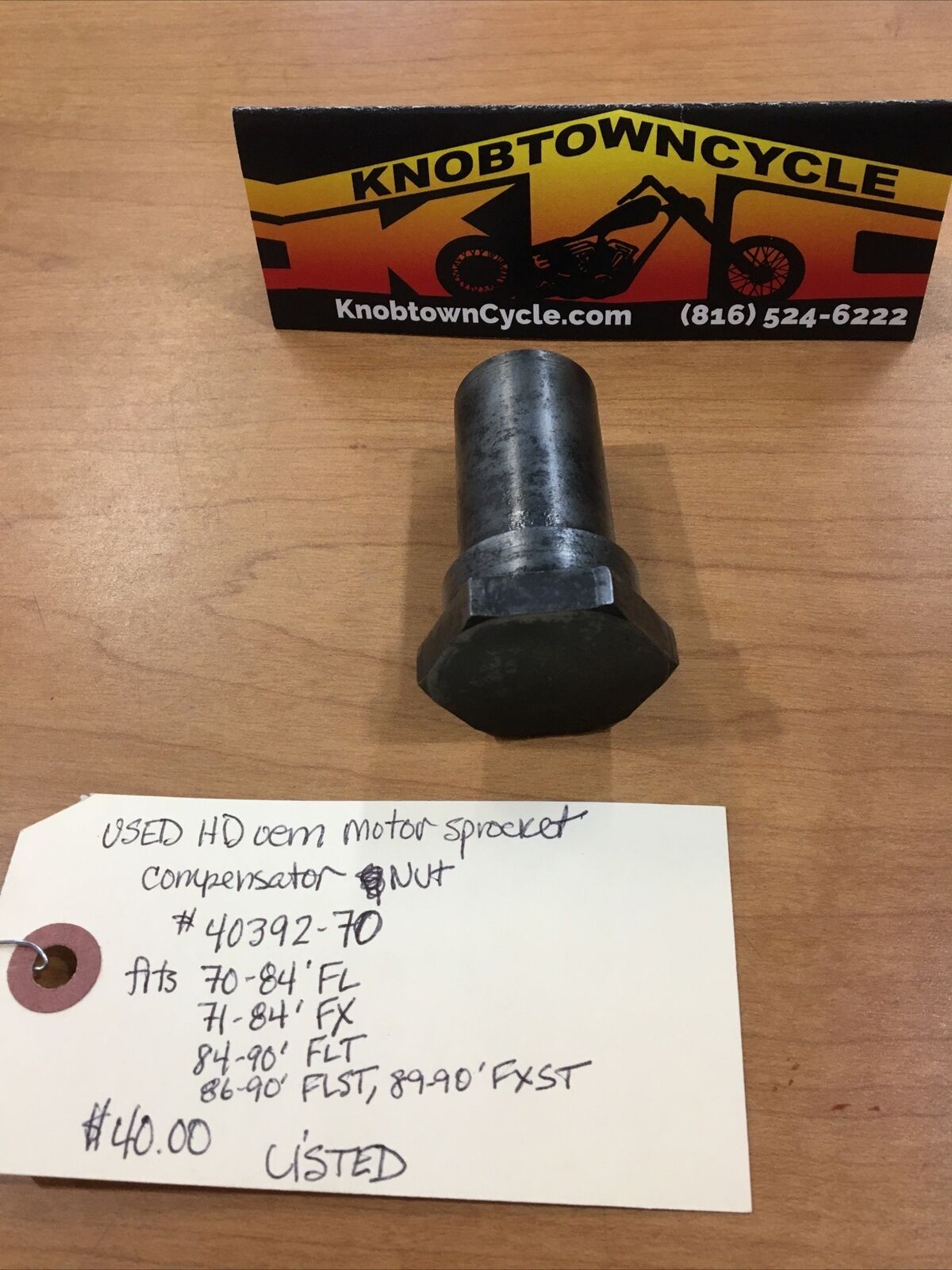 Harley Davidson oem Motor Sprocket Compensator Nut #40392-70. Condition is used. Fits 70-84’ FL, 71-84’ FX, 84-90’ FLT, 86-90’ FLST, 89-90’ FXST models buyer is responsible for fitment and applications