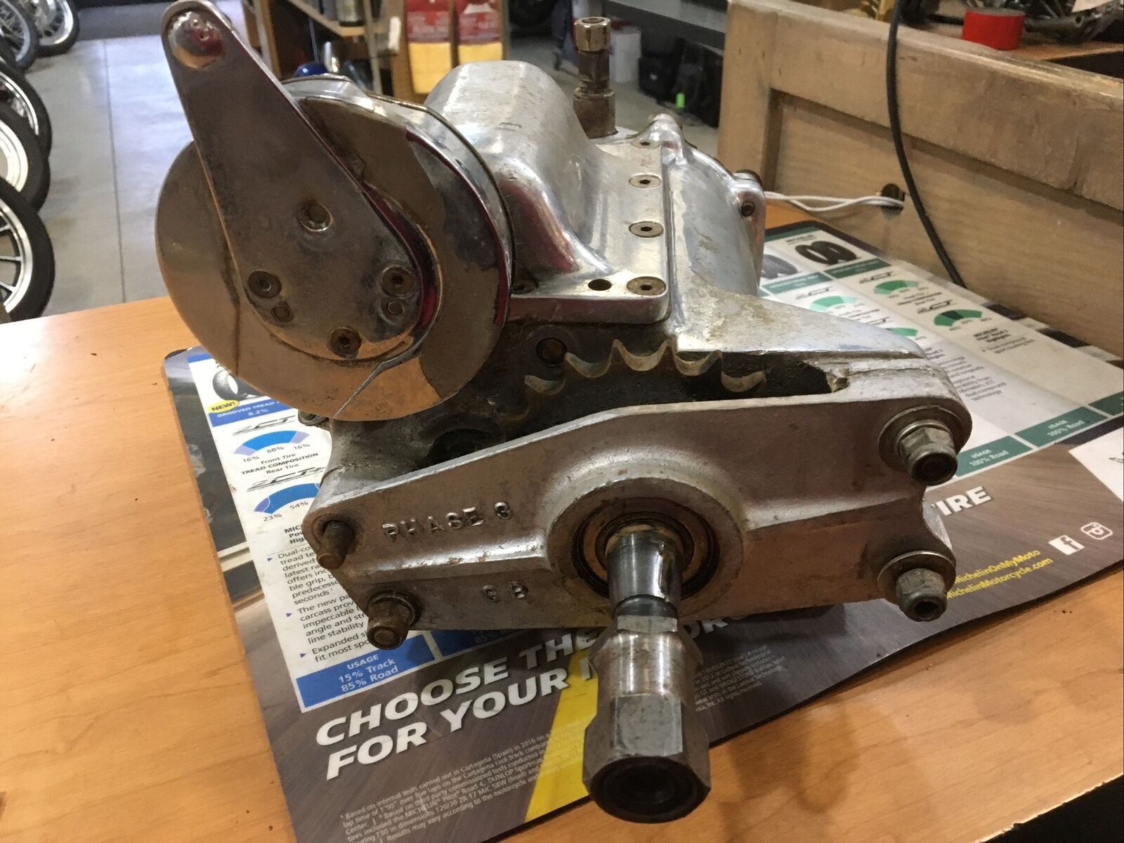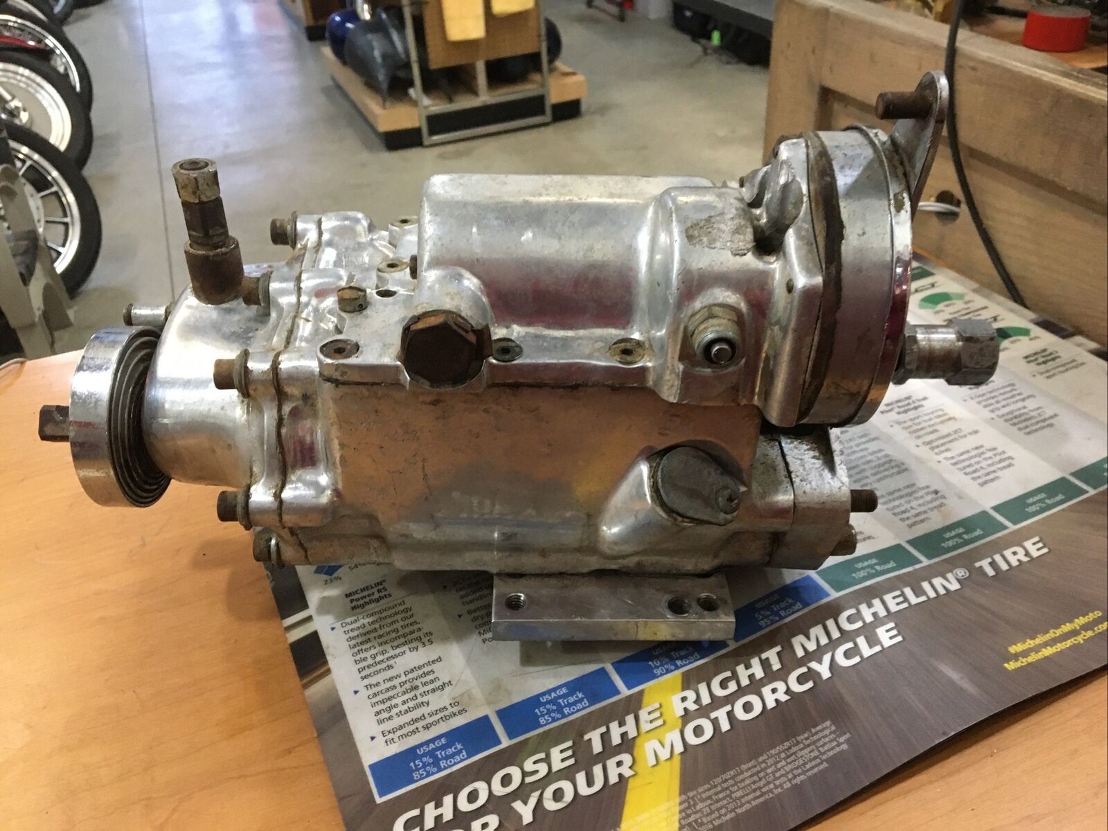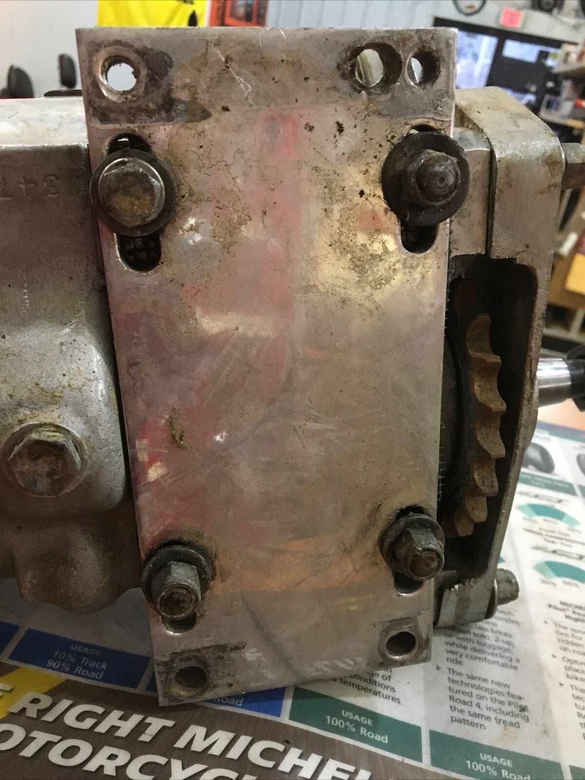 Harley Davidson oem Ratchet Top 4-Speed Transmission and Aftermarket mounting plate. #34703-65. Condition is used has been bench tested goes thru gears has a small crack in top cover as seen in pictures. Fits 65-69’ FL Panhead, Shovelheads buyer is responsible for fitment and applications