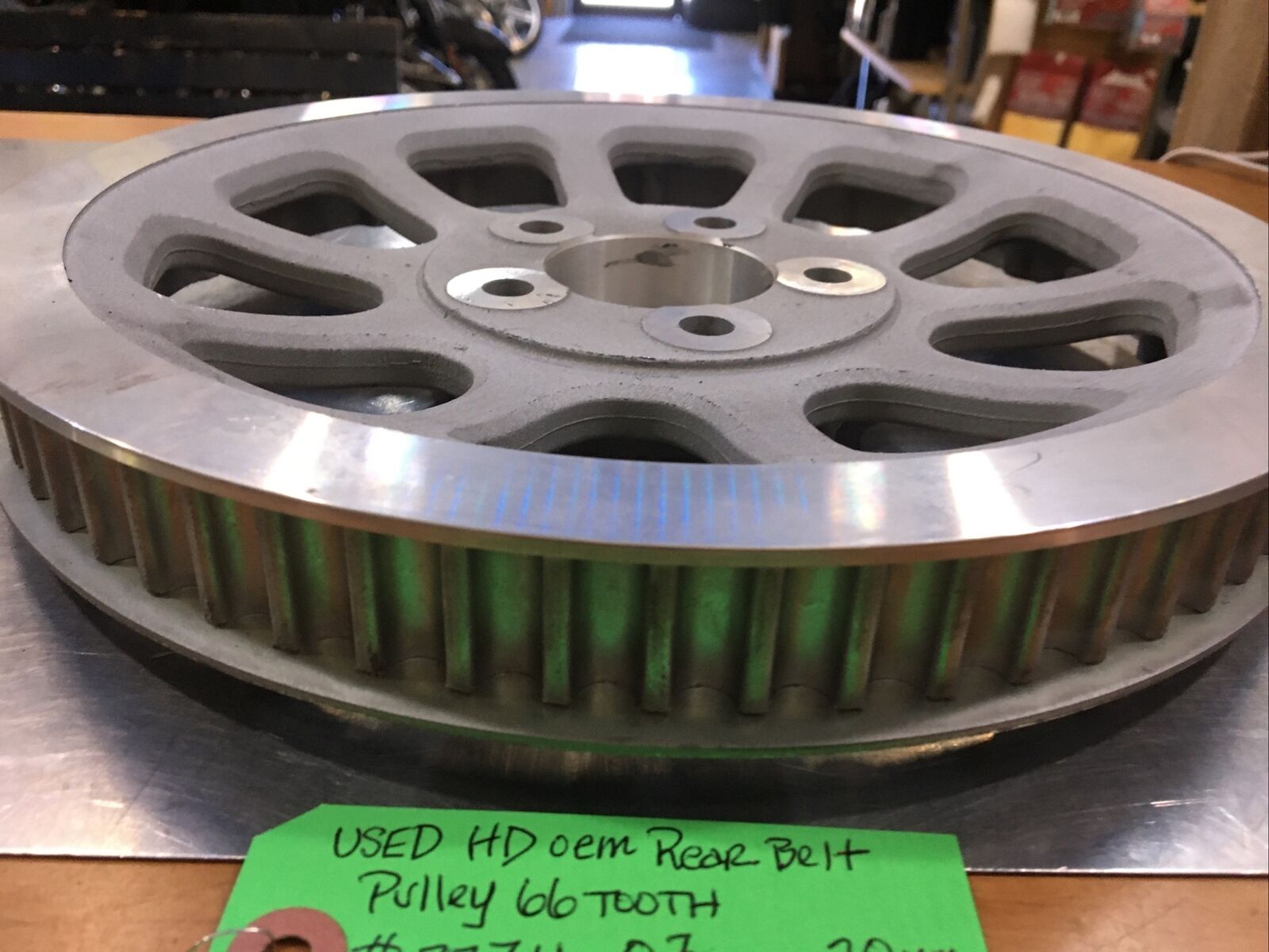 Harley Davidson oem Rear Belt Pulley 66 Tooth #37711-07. Condition is used. 20mm width. Fits 07-17’ FLST, FXST models buyer is responsible for fitment and applications