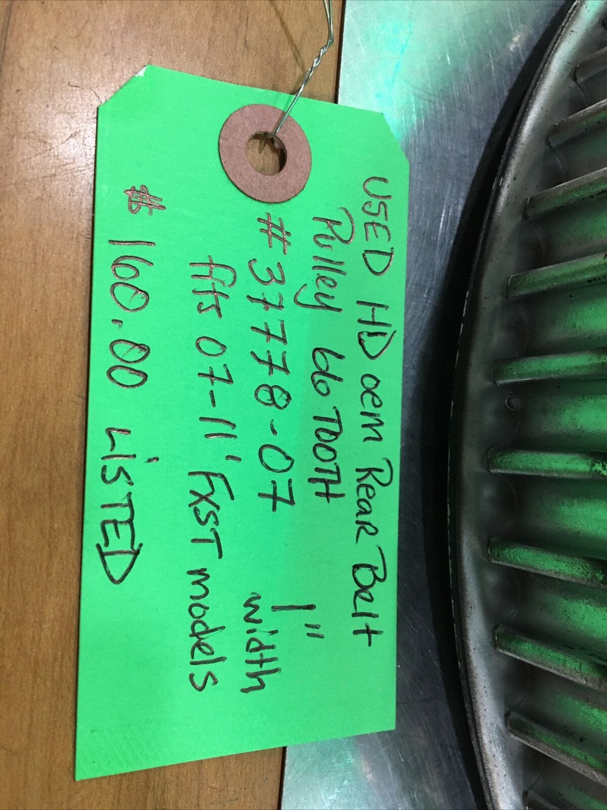 Harley Davidson oem Rear Belt Pulley 66 Tooth #37778-07. Condition is used. 1” width. Fits 07-11’ FXST models buyer is responsible for fitment and applications