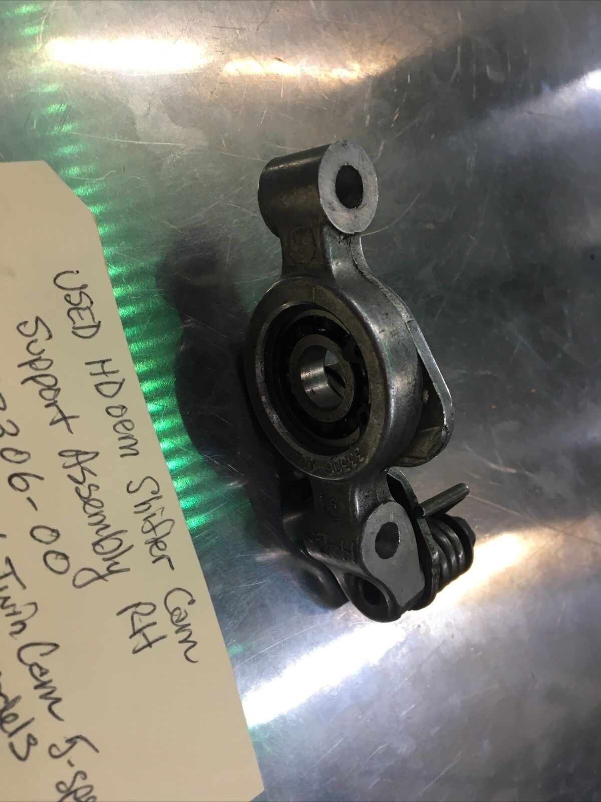 Harley Davidson oem Shifter Cam Support Assembly RH #33306-00. Condition is used. Fits 00-01’ Twin Cam 5-speed models buyer is responsible for fitment and applications