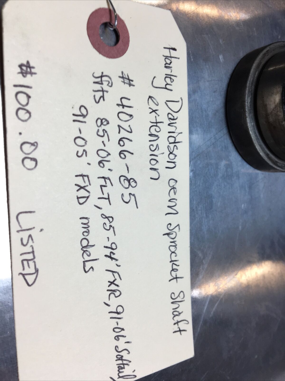 Harley Davidson oem Sprocket Shaft Extension #40266-85. Condition is used. Fits 85-06’ FLT, 85-94’ FXR, 91-06’ Softails, 91-05’ FXD models buyer is responsible for fitment and applications