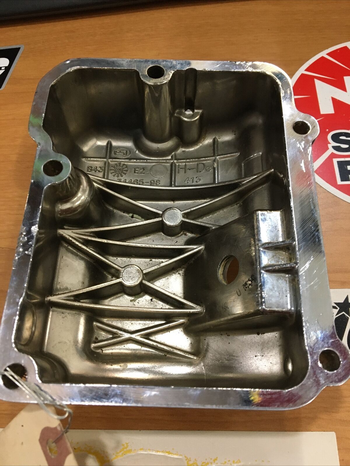 The Harley Davidson OEM transmission top cover #34465-98 is a crucial component for Harley-Davidson motorcycles, specifically designed to fit 1998-1999 Softails and 1998-2000 Touring models. This used transmission top cover is a genuine Harley Davidson part, ensuring quality and compatibility with your bike.