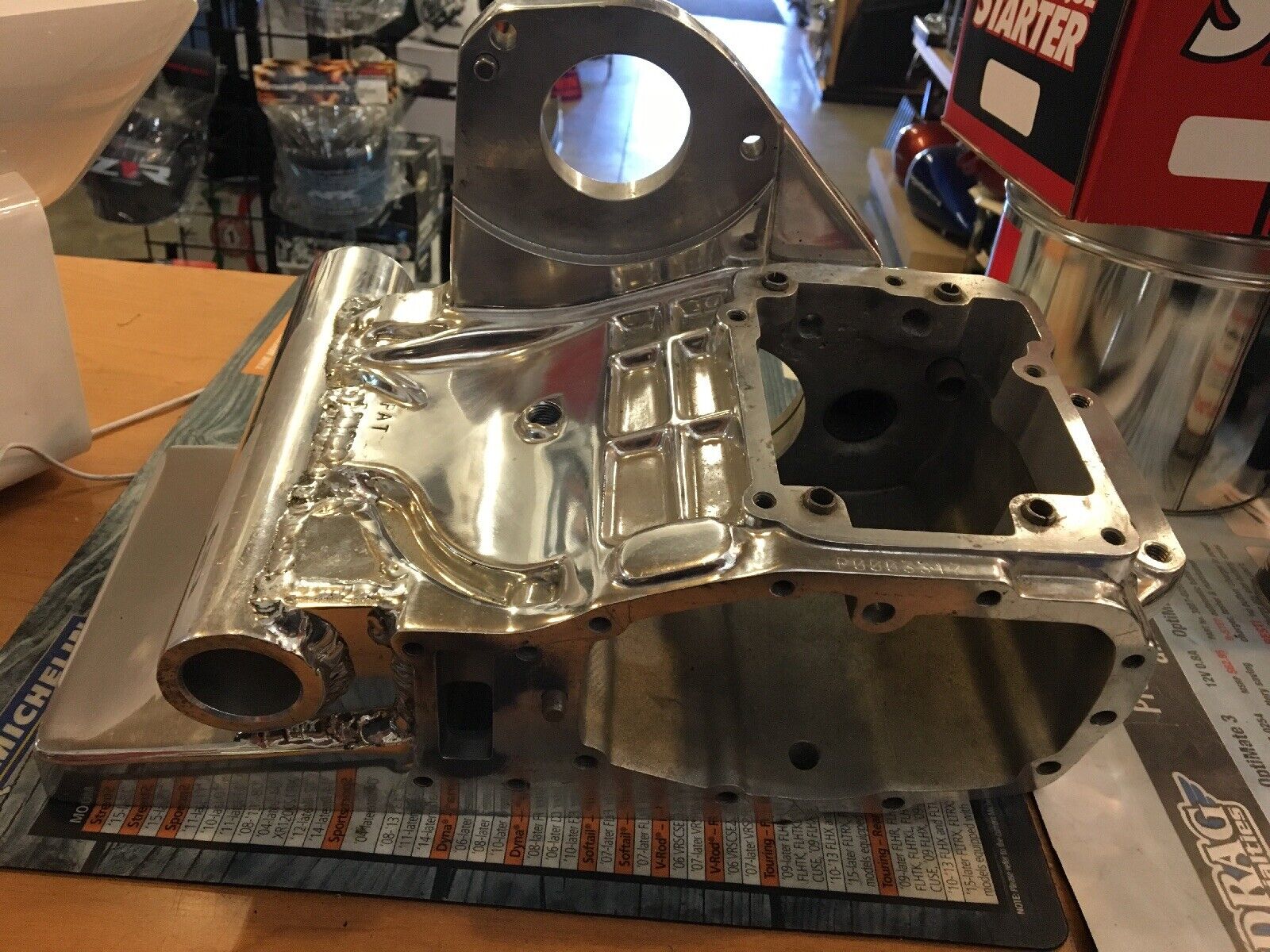 Harley Davidson Touring Transmission Housing #33285-93A. Condition is Used. Polished fits EVO 5-speed buyer is responsible for fitment and applications
