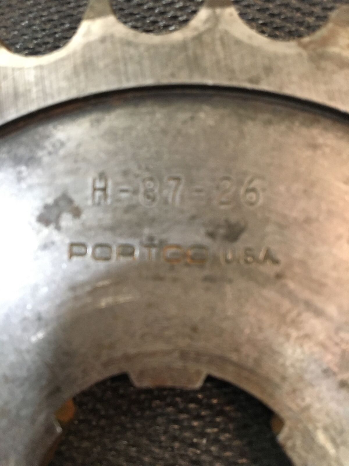 PORTCO 26 tooth transmission sprocket #H-87-26. Condition is “Used”.fits Harley Davidson 36-79’ 4-speed Big Twins replaces oem #35215-41 buyer is responsible for fitment and applications no returns
