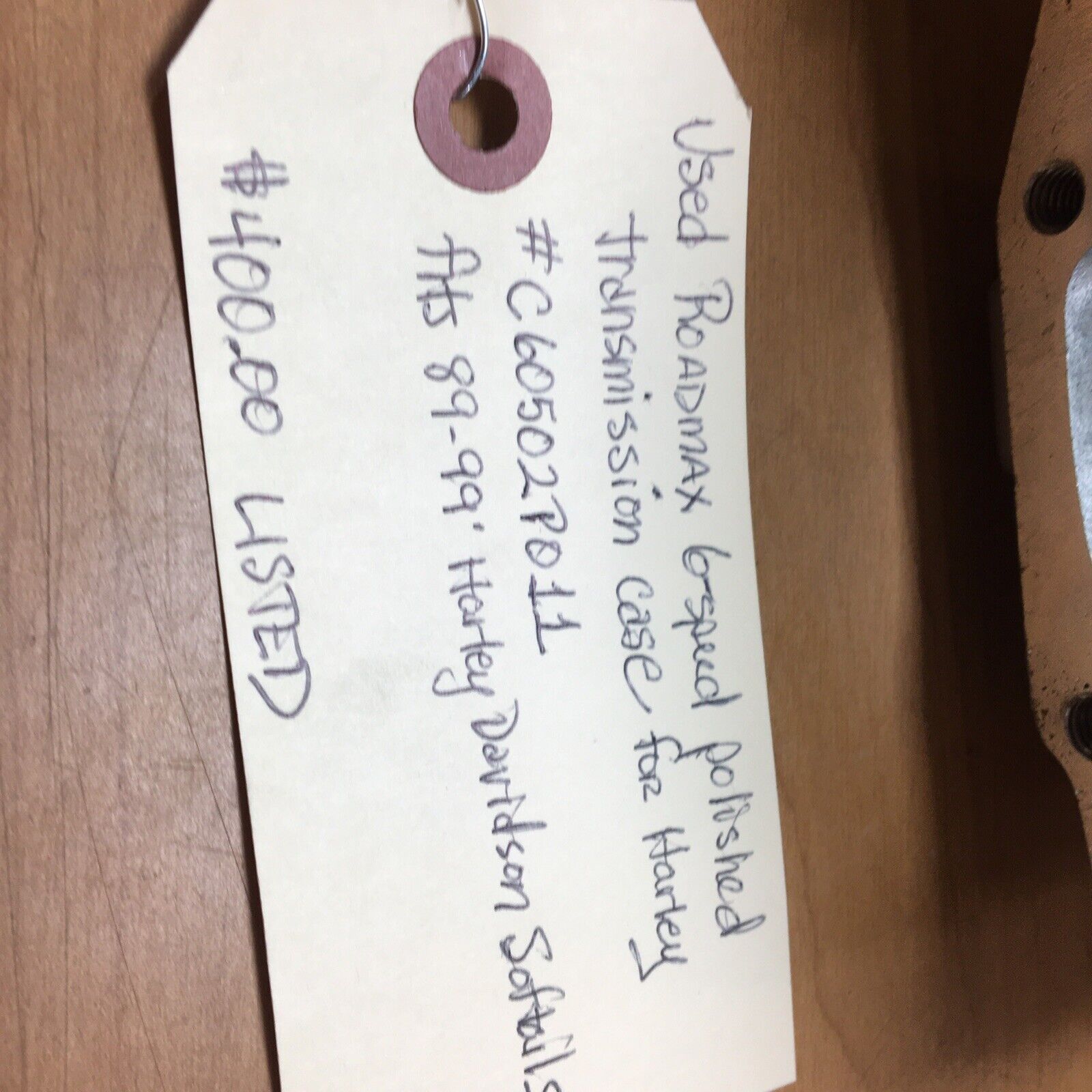 Roadmax 6-Speed Polished Transmission Case for Harley #C60502P011. Condition is used. Fits Harley Davidson 89-99’ Softails buyer is responsible for fitment and applications