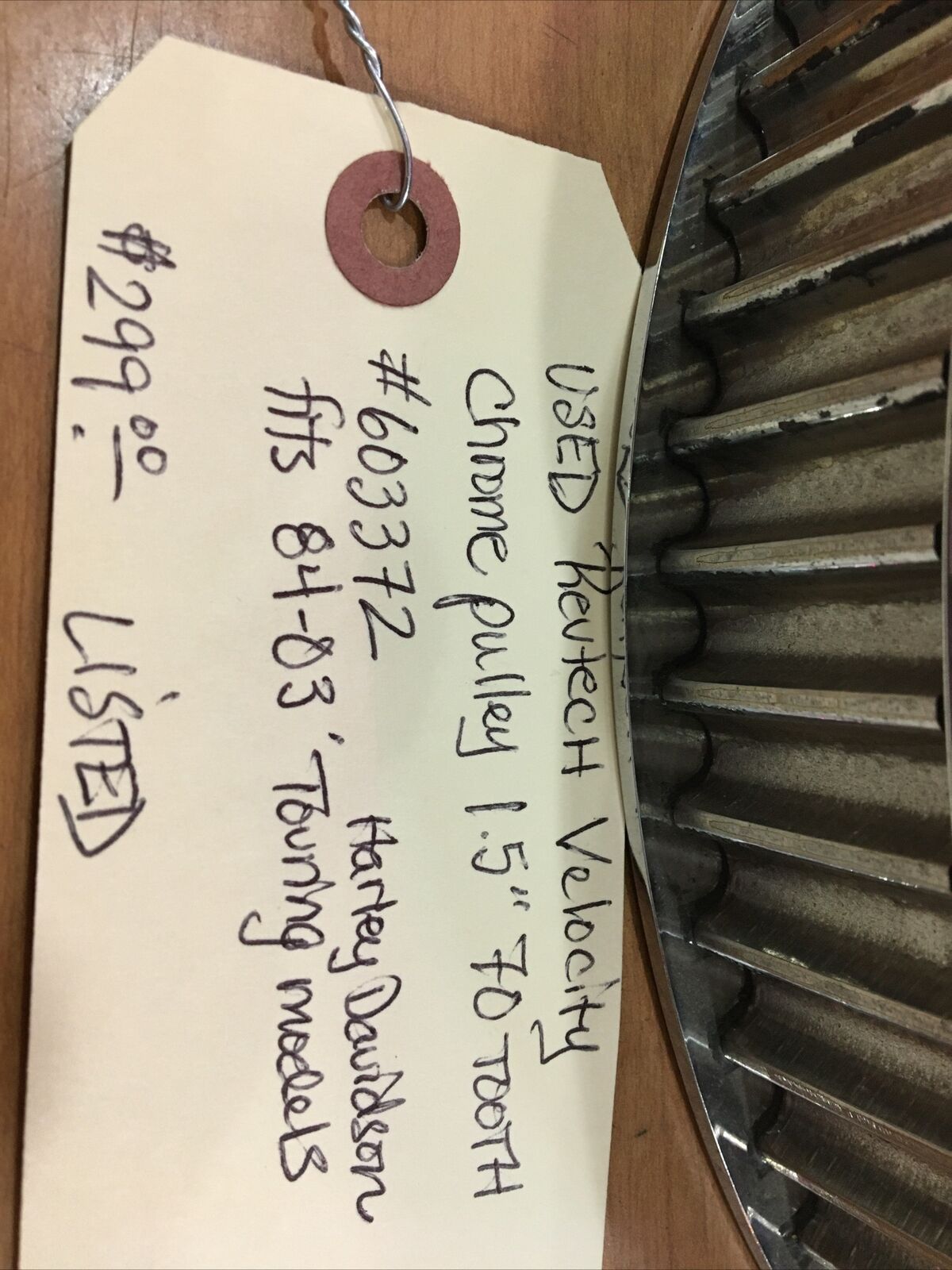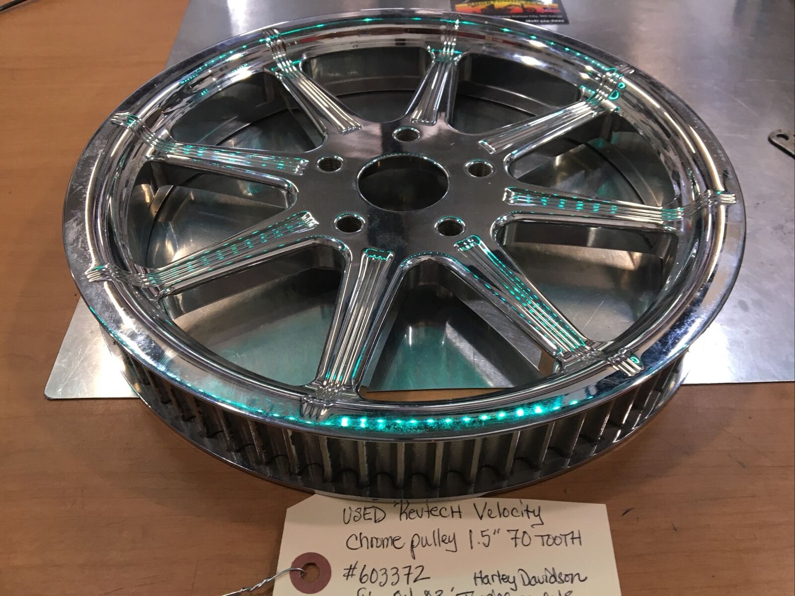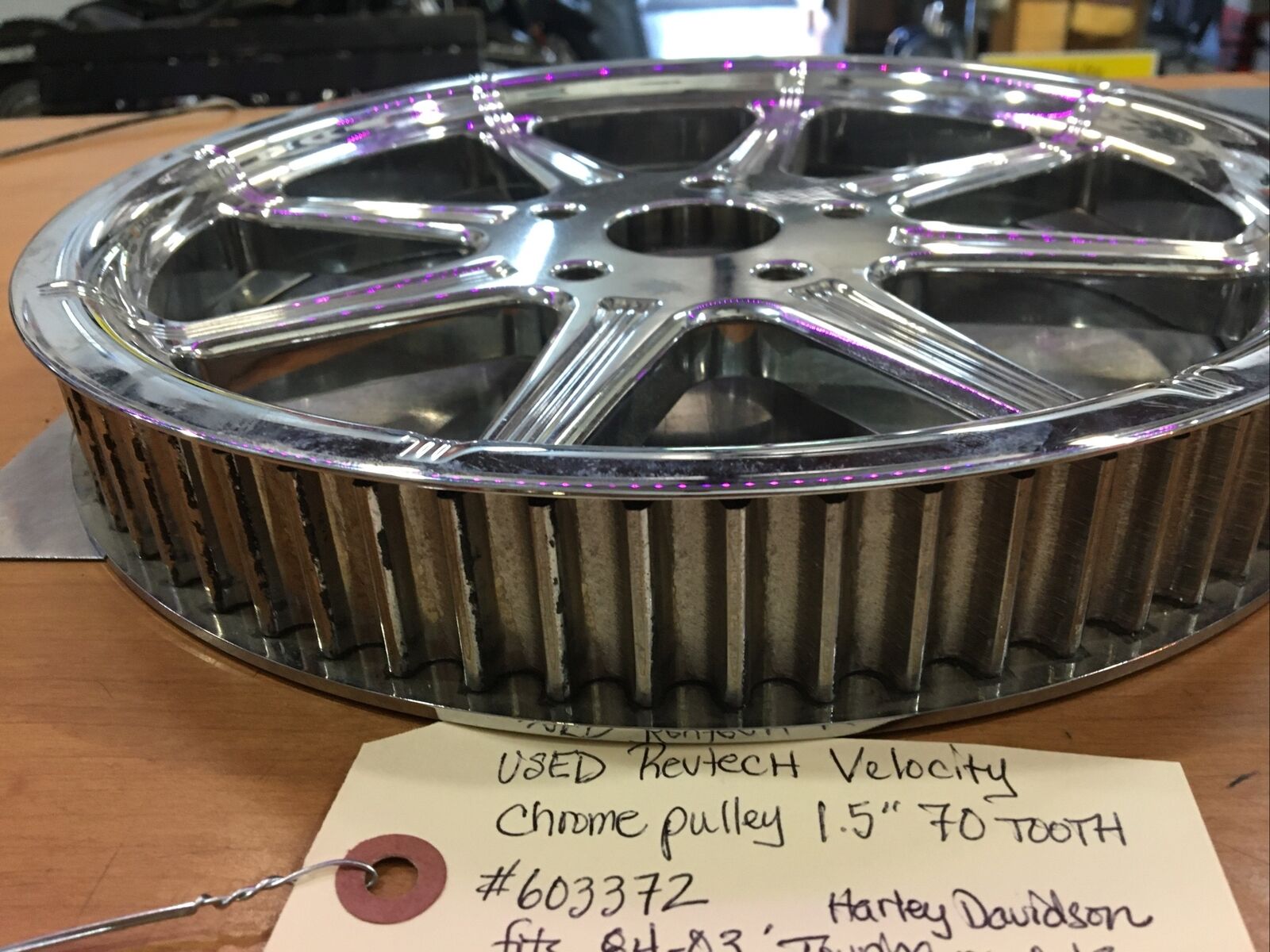 Used revtech velocity chrome pulley 1-1/2” width 70 tooth fits 84-03’ Touring models buyer is responsible for fitment and applications no returns