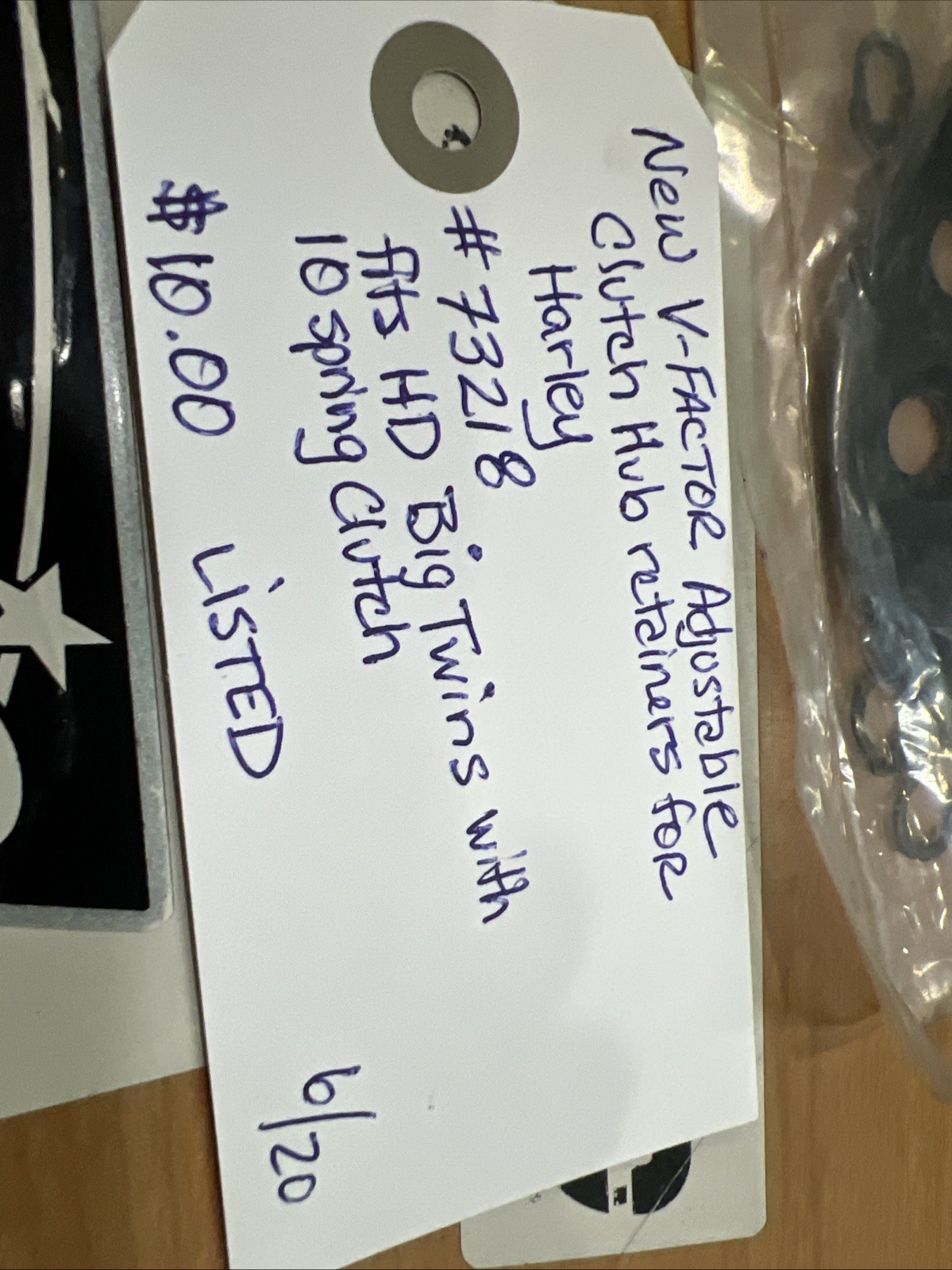 V-Factor Adjustable Clutch Hub Retainers For Harley #73218. Condition is new. Fits Harley Davidson Big Twins with 10 spring clutch buyer is responsible for fitment and applications