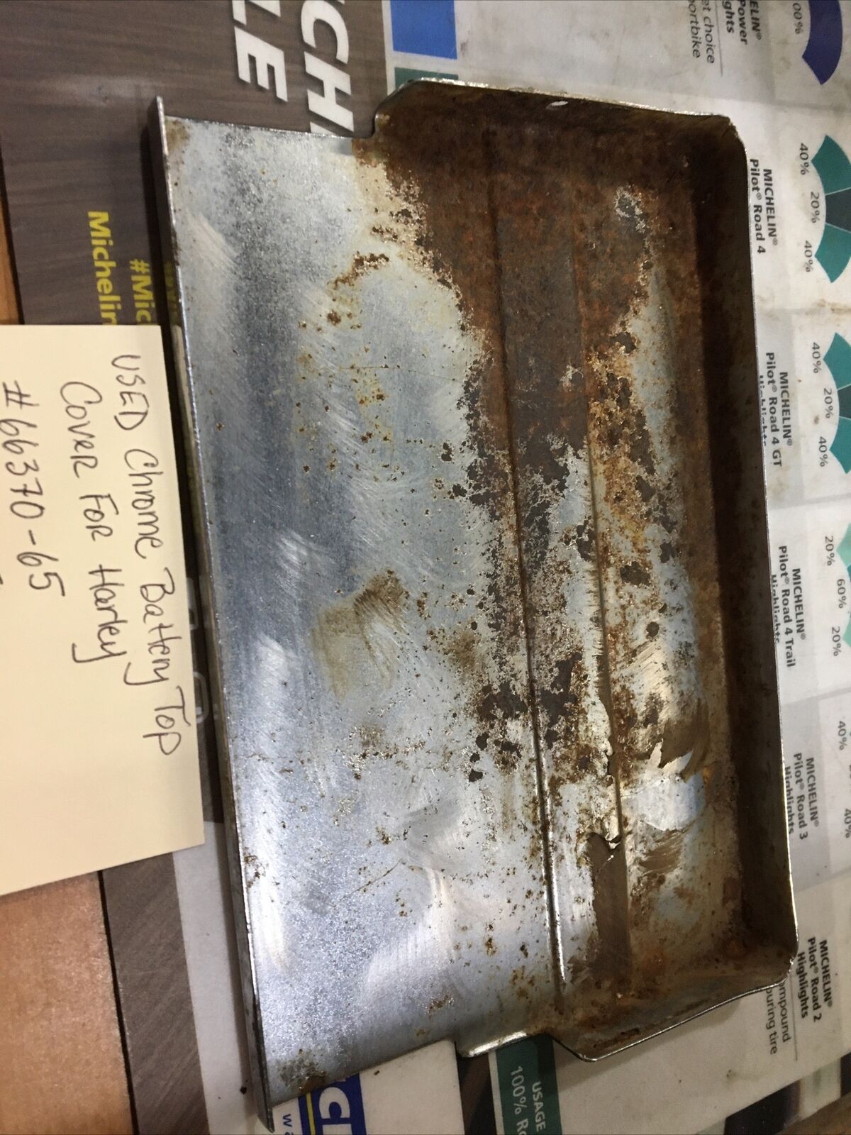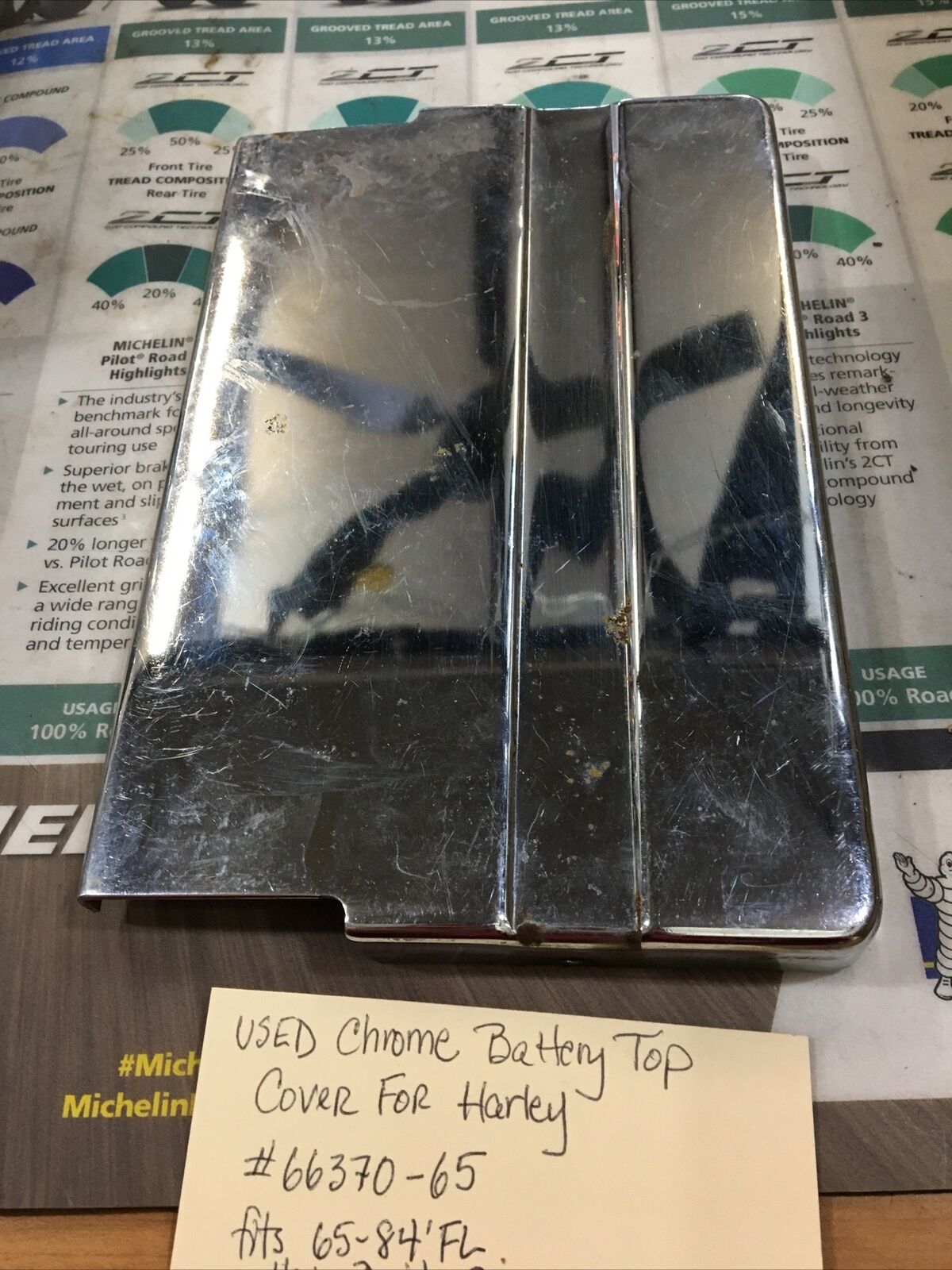 Chrome Battery Top Cover For Harley #66370-65. Condition is used. Fits Harley Davidson 65-84’ FL models buyer is responsible for fitment and applications
