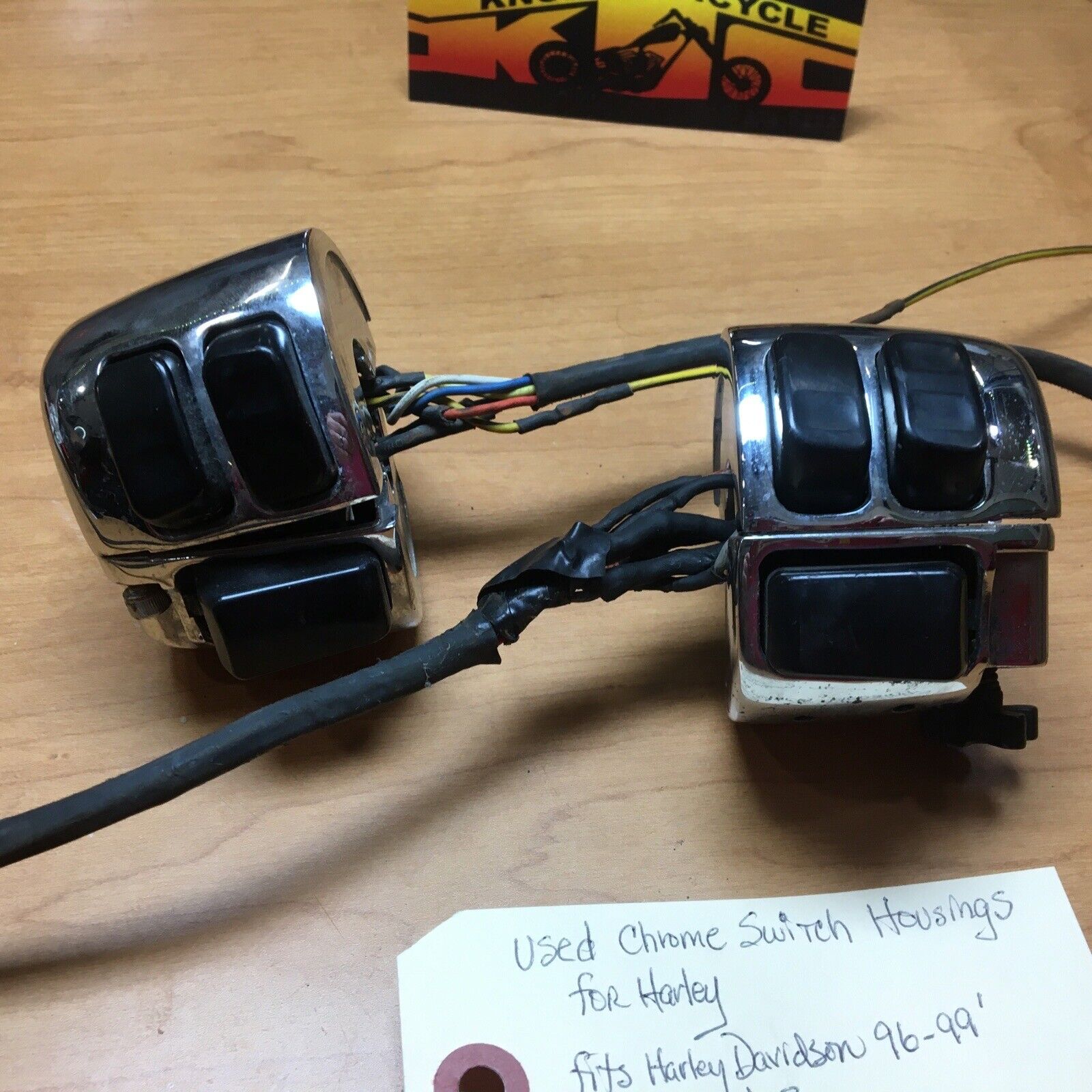 Chrome Switch Housings for Harley. Condition is used. Fits Harley Davidson 96-99’ Big Twins buyer is responsible for fitment and applications