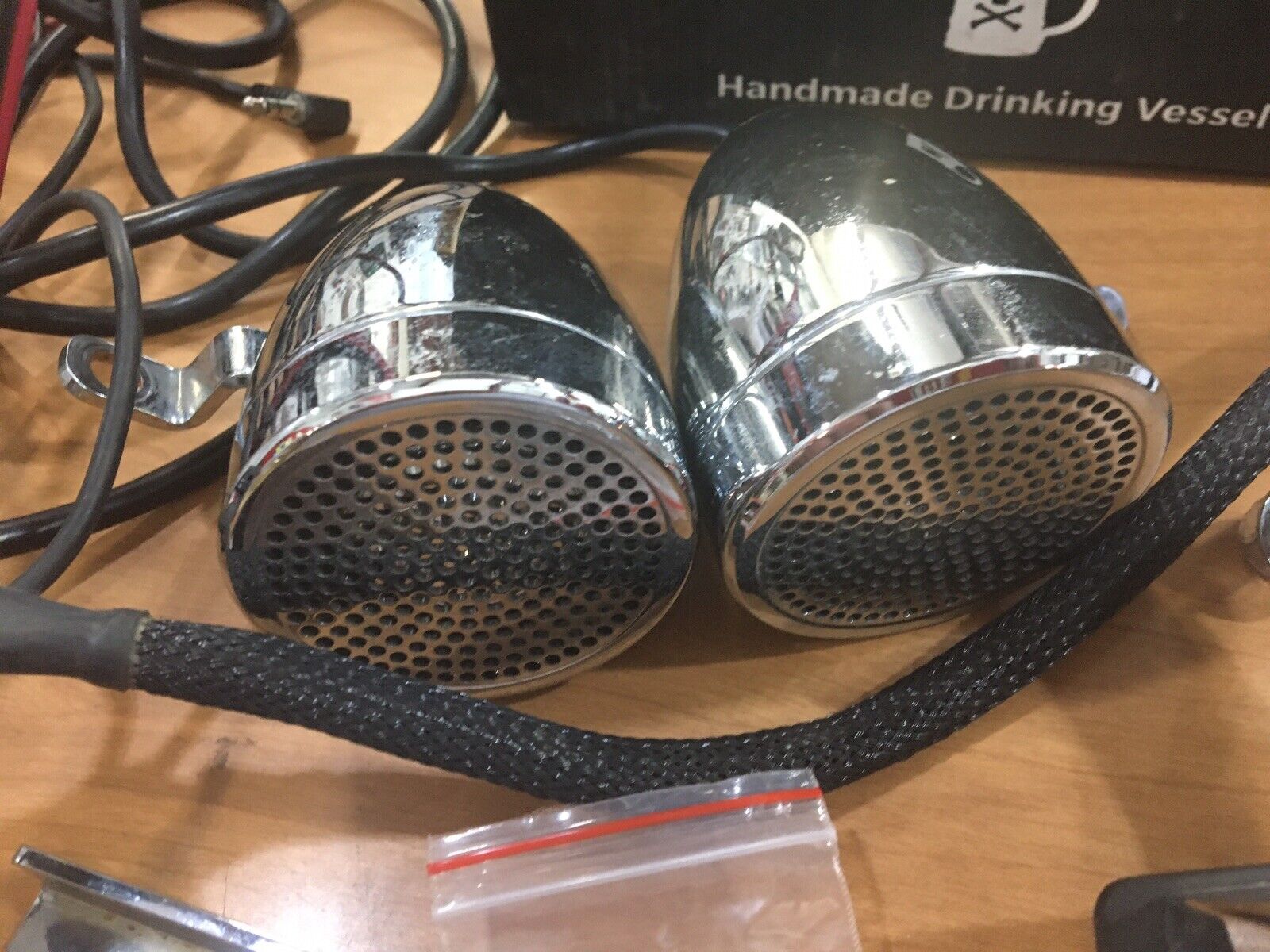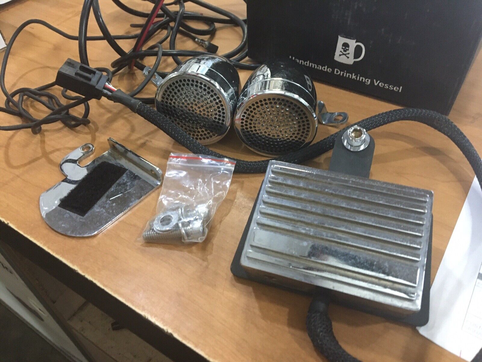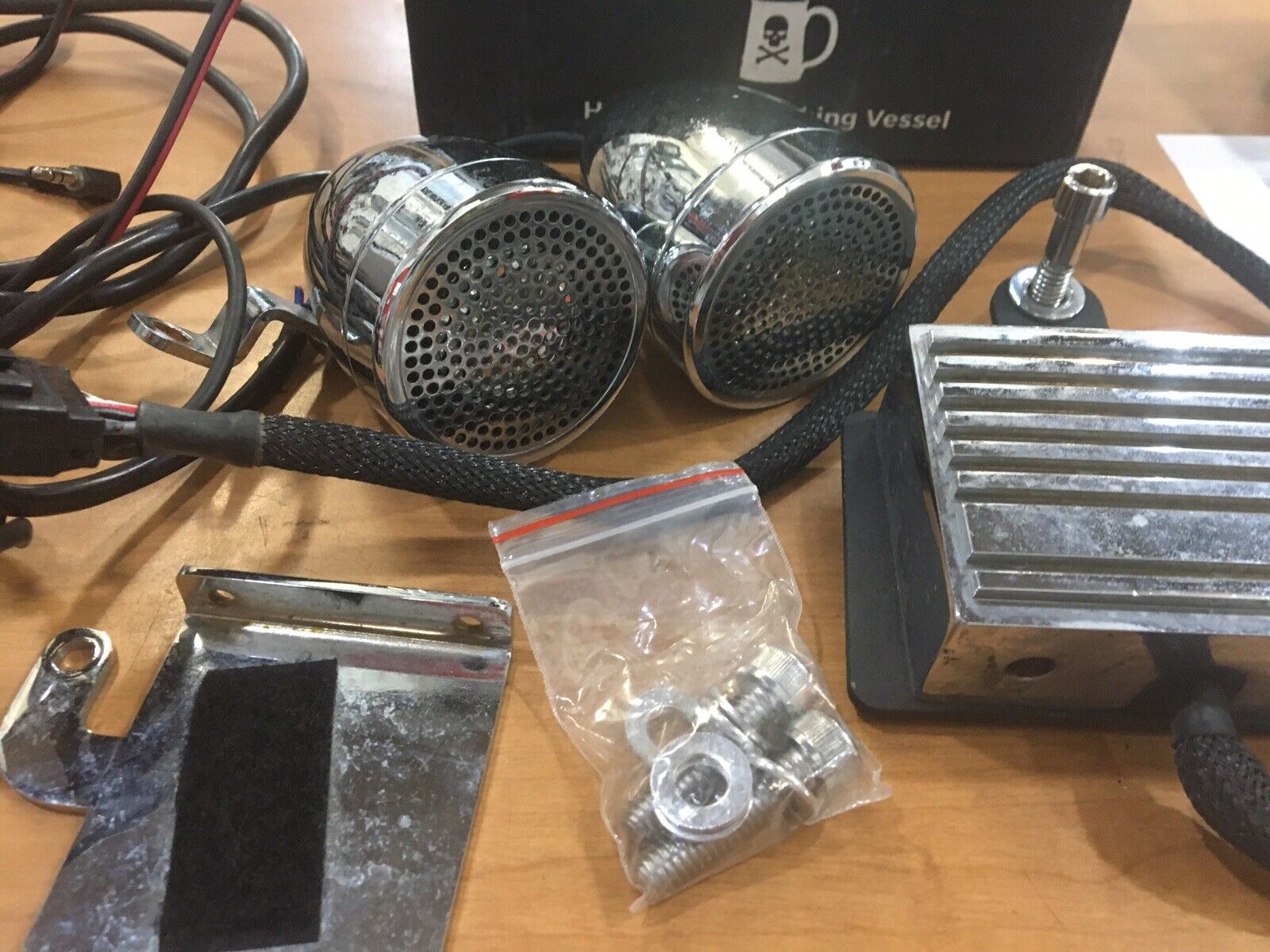 Cycle Sounds Universal Sound System. Condition is Used.universal metric has pair of bullet speakers, amplifier and bracket , mp3 mounting bracket and wiring buyer is responsible for fitment and applications no returns