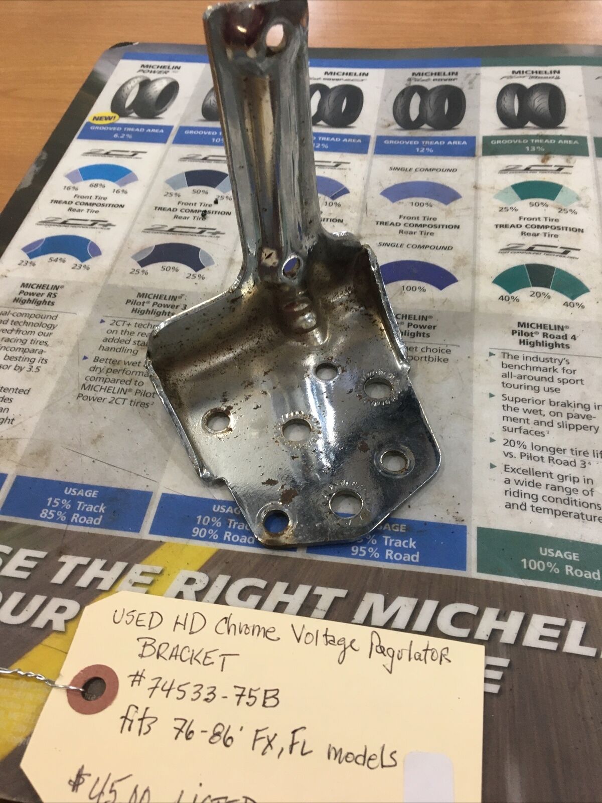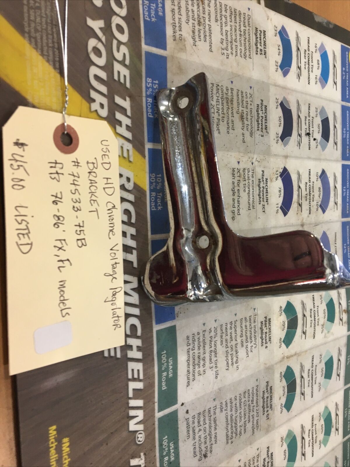 Harley Davidson Chrome Voltage Regulator Bracket #74533-75B. Condition is used. Fits 76-86’ FX,FL models buyer is responsible for fitment and applications