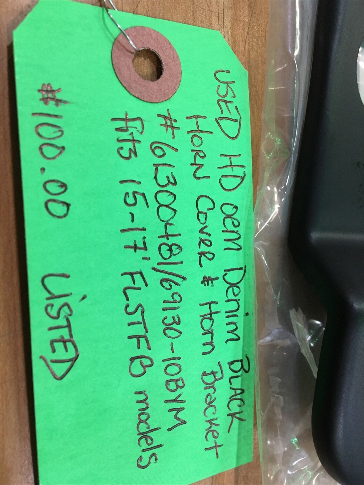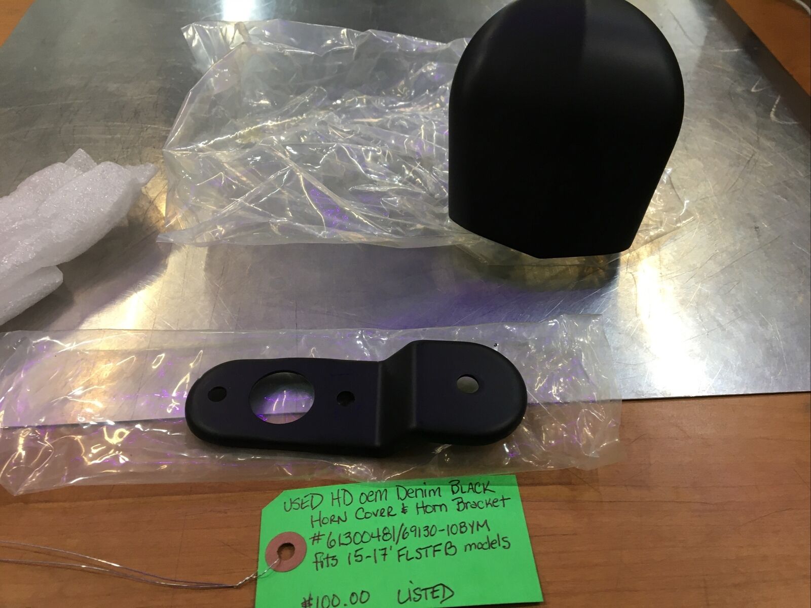 Harley Davidson oem Denim Black Horn Cover & Horn Bracket #61300481/69130-10BYM. Condition is used. Fits 15-17’ FLSTFB models buyer is responsible for fitment and applications