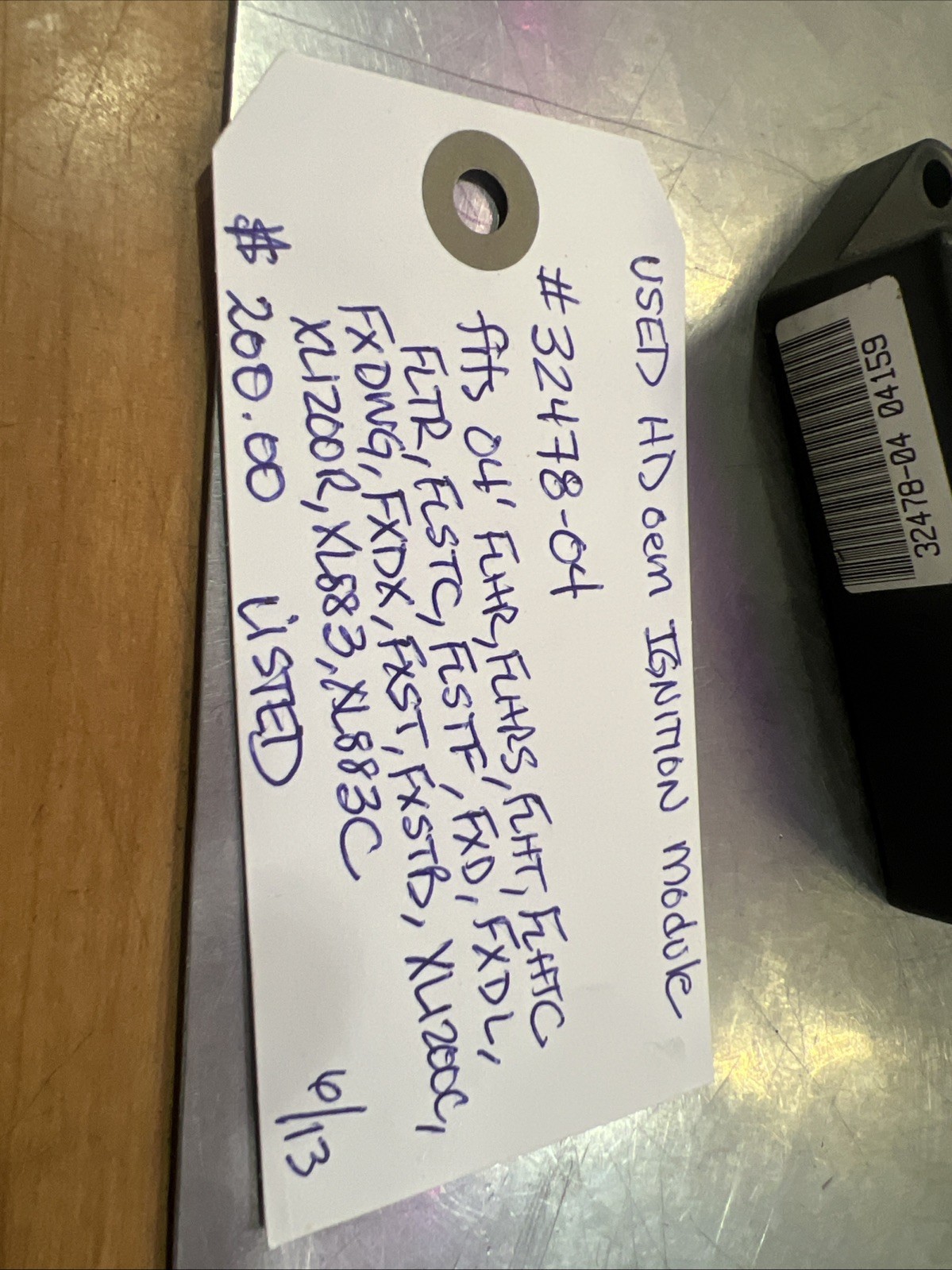 Harley Davidson oem Ignition Module #32478-04. Condition is used. Fits 04’ FLHR, FLHRS, FLHT, FLHTC, FLTR, FLSTC, FLSTF, FXD, FXDL, FXDWG, FXDX, FXST, FXSTB, XL1200C, XL883, XL883C , XL1200R models buyer is responsible for fitment and applications