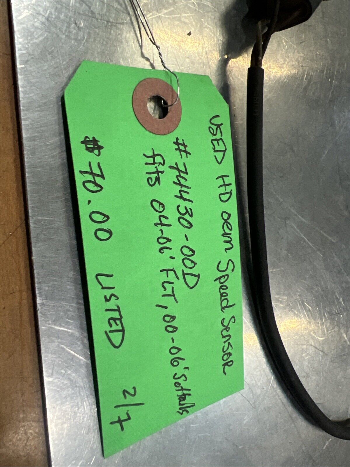 Harley Davidson oem Speed Sensor #74430-00D. Condition is used. Fits 04-06’ FLT, 00-06’ Softails buyer is responsible for fitment and applications