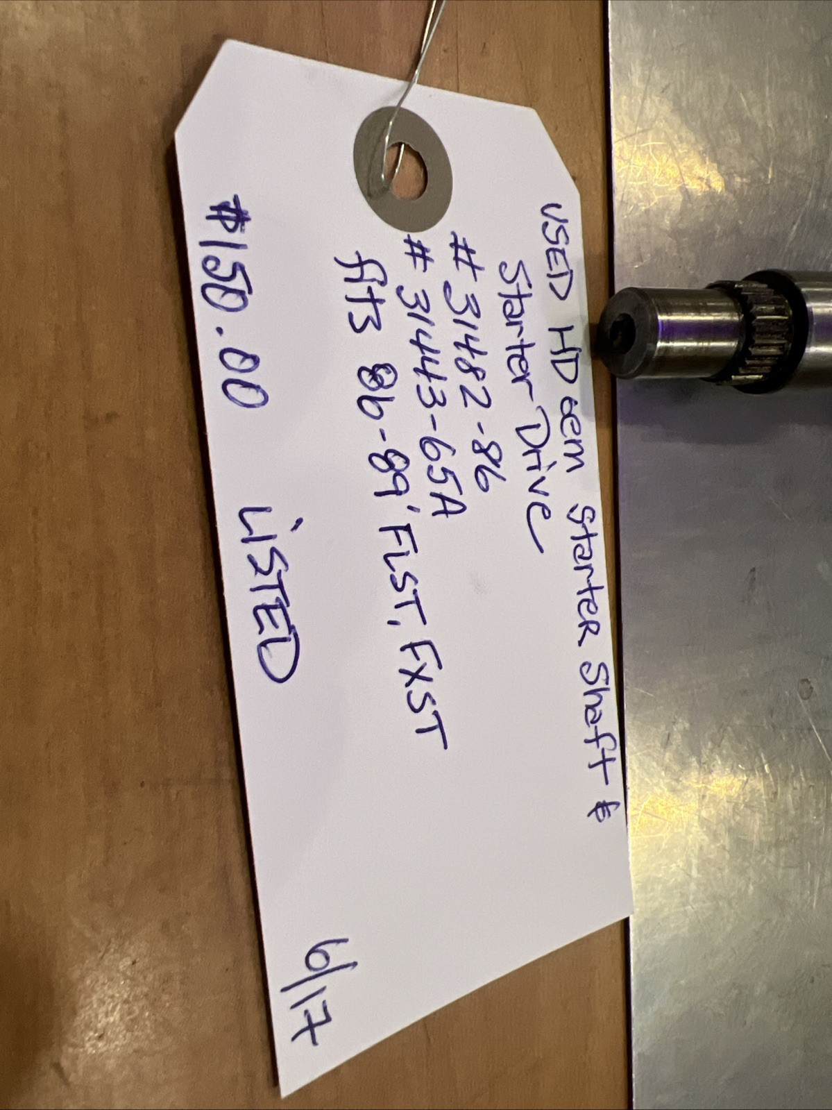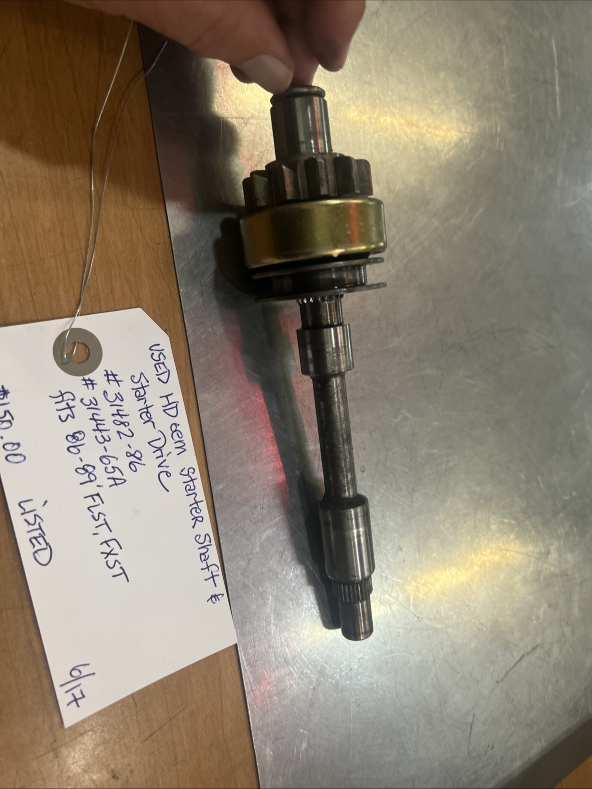 Harley Davidson oem Starter Shaft & Starter Drive #31482-86/31443-65A. Condition is used. Fits 86-89’ FLST, FXST models buyer is responsible for fitment and applications