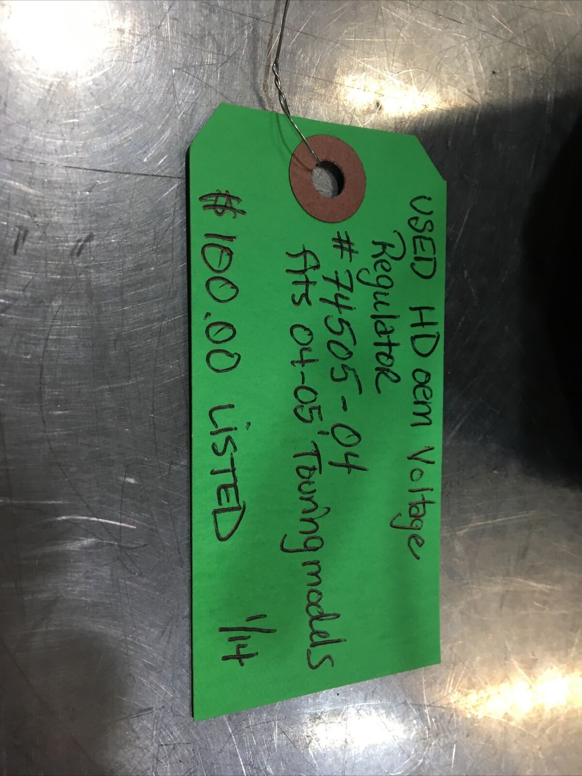 Harley Davidson oem Voltage Regulator #74505-04. Condition is used. Fits 04-05’ Touring models buyer is responsible for fitment and applications